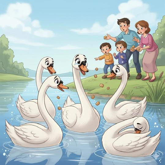 E jogaram pedacinhos de biscoito e de bolo. Tímido diante de tantos elogios, o cisne escondeu a cabeça embaixo da asa.