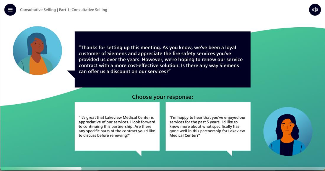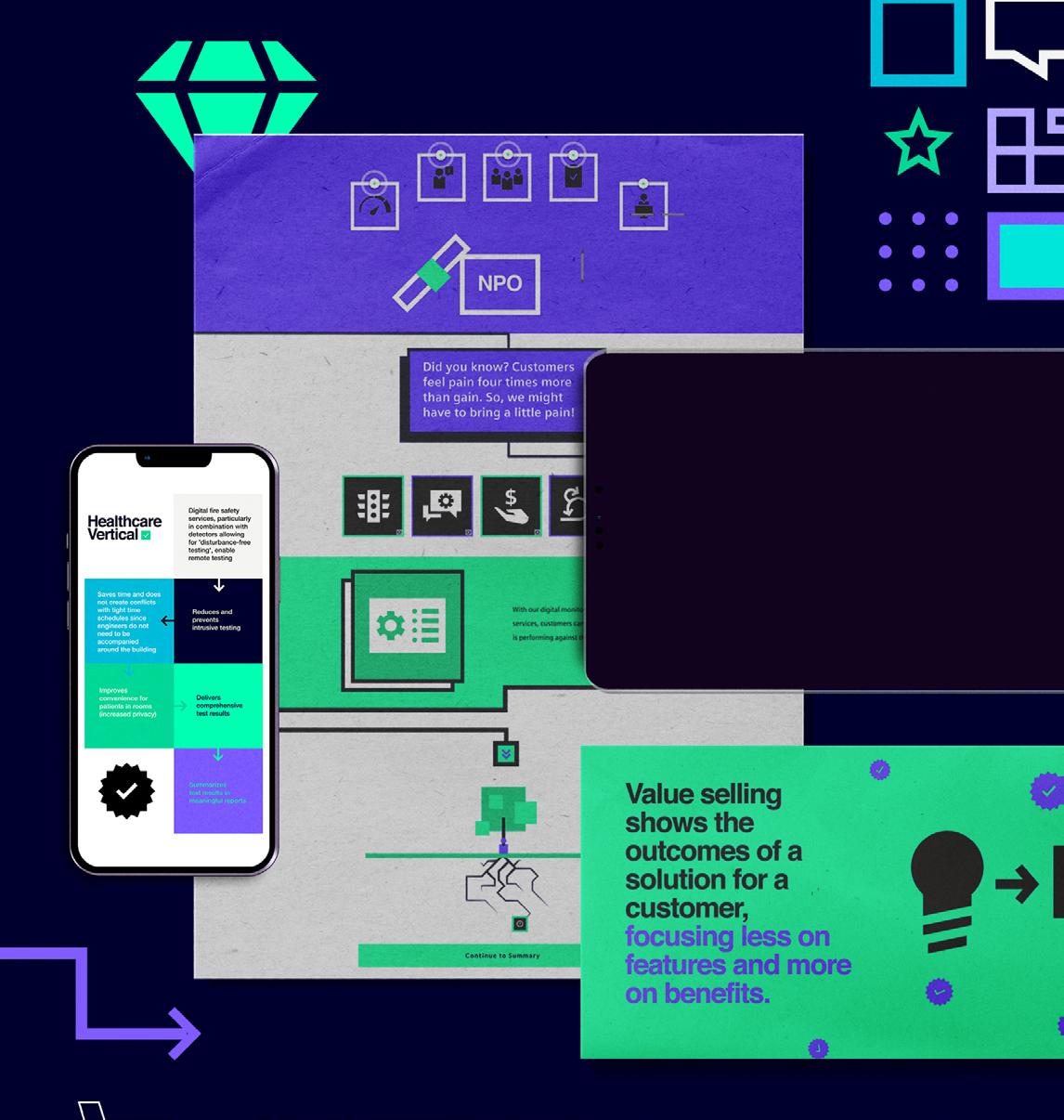 Simulations also make up part of the Portfolio and Vertical training packages to allow salespeople to test their valueselling skills and new knowledge practically to help embed learning and keep engagement high.