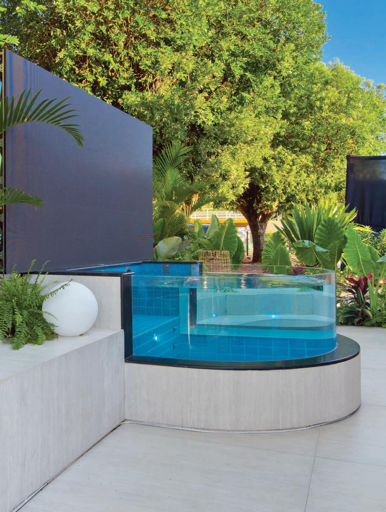 O modelo Cetus da iGUi traz um acrílico curvo que transforma a piscina em uma verdadeira moldura para momentos únicos.