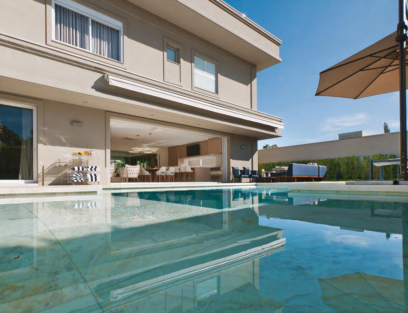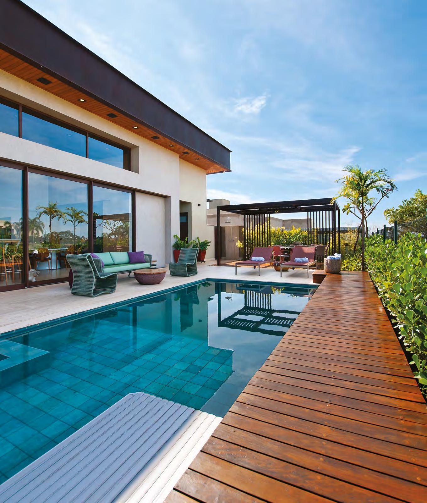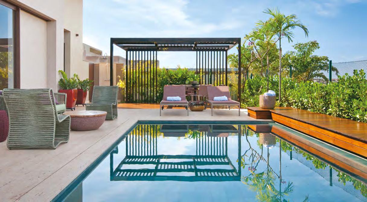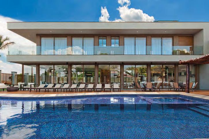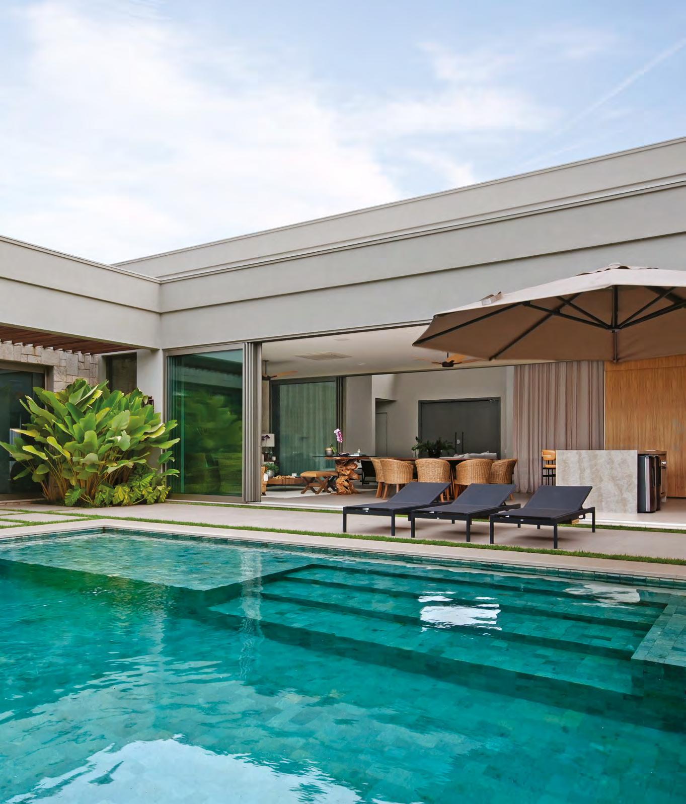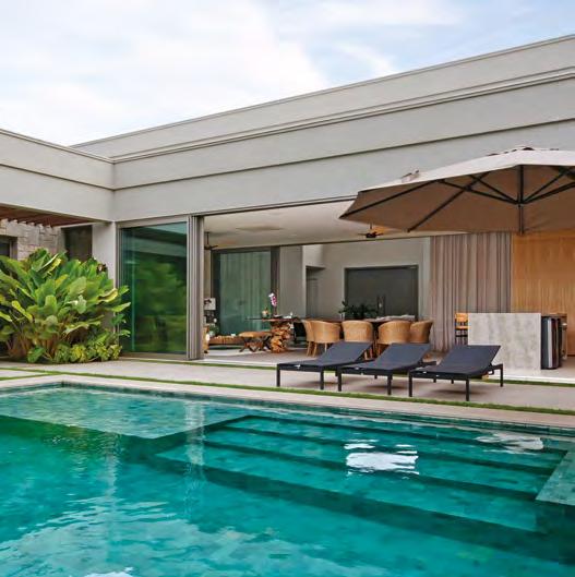 JULLIANA WAGNER Pensada para ser uma extensão de um resort, esta residência tem a área de lazer com piscina e lareira como protagonista
