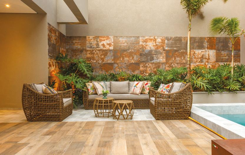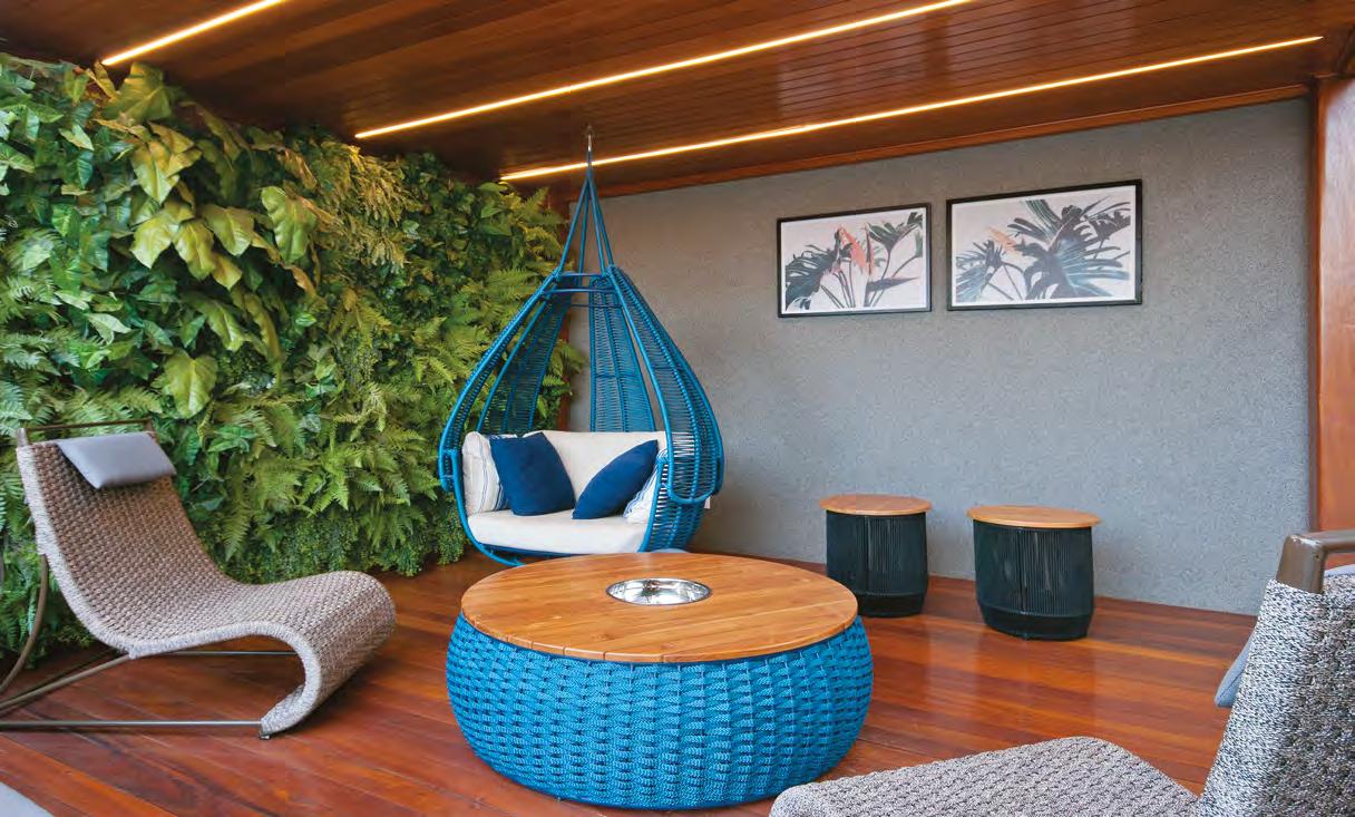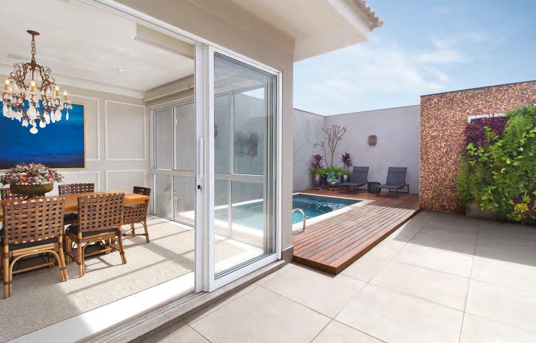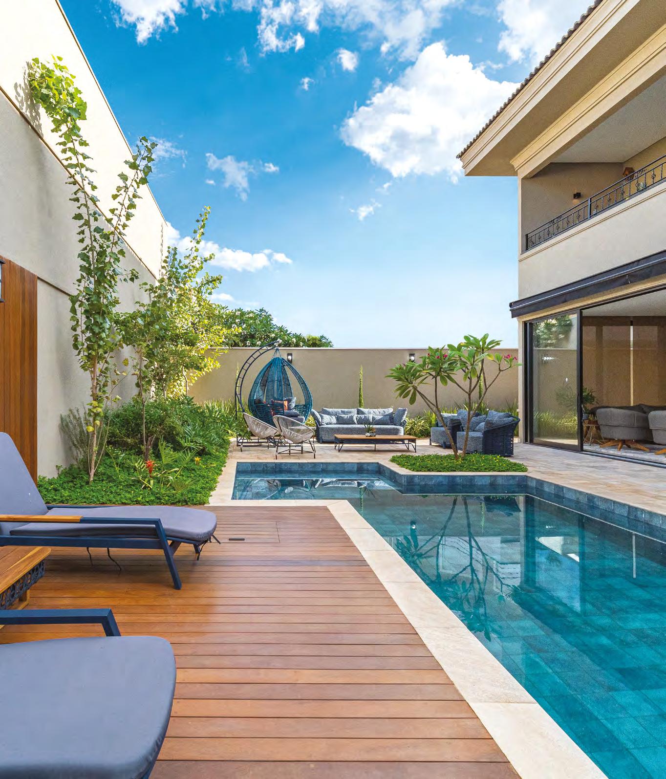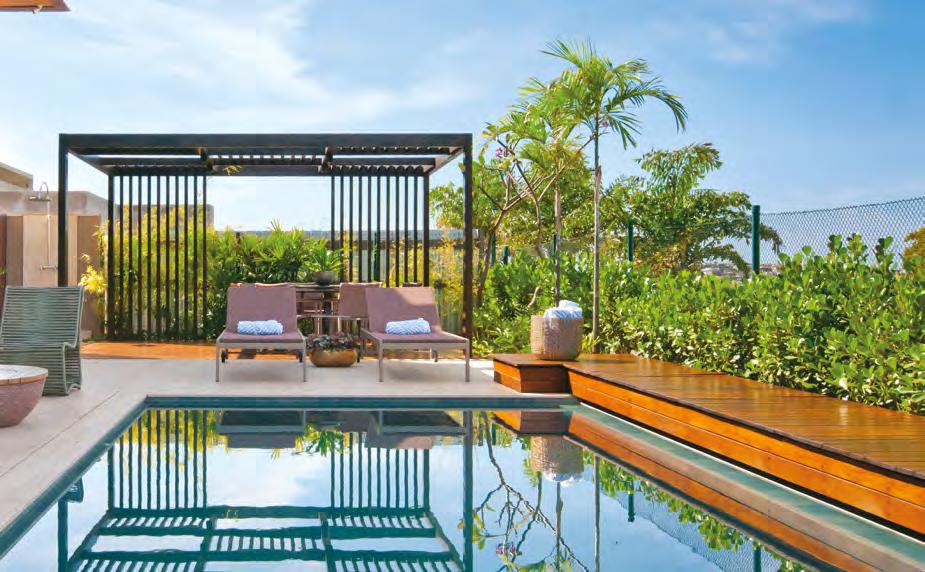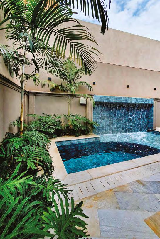 JULLIANA WAGNER Pensada para ser uma extensão de um resort, esta residência tem a área de lazer com piscina e lareira como protagonista