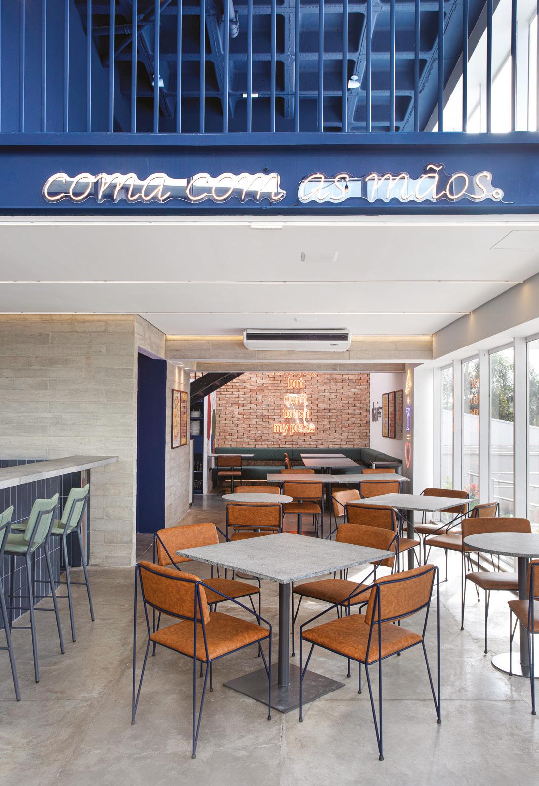 FAJ ARQUITETURA Um toque despojado e cheio de cor ganha a cena nesta pizzaria napolitana. Entre os destaques estão os revestimentos e os letreiros de neon