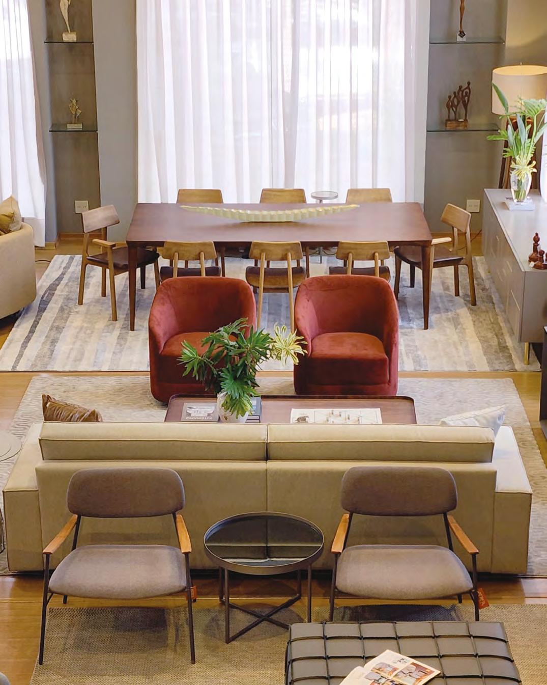 01| Exclusividade na Perfil Casa, a linha Carmel da Tidelli; 02| Os móveis da coleção Dunas, da marca autoral Dieedro, do arquiteto Jayme Bernardo, são encontrados somente na Masotti; 03| Desenhada pela designer Rejane Carvalho Leite, a poltrona Flow, produto exclusivo da Jackie Móveis; 04| Sala de jantar em tons de cinza e preto, da Aparato Interiores, que combinam com diversos estilos de decoração; 05| Na P.O Móveis e Decoração você encontra produtos exclusivos como essa mesa de jantar com 12 lugares, com tampo laqueado e base cinamomo Nogueira; 06| Cadeira Tecton com apoio e cadeiras Matrix, da Flexform, para a Perfil Office. Ideais para escritórios por sua ergonomia.