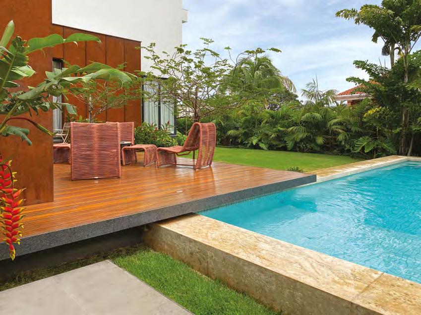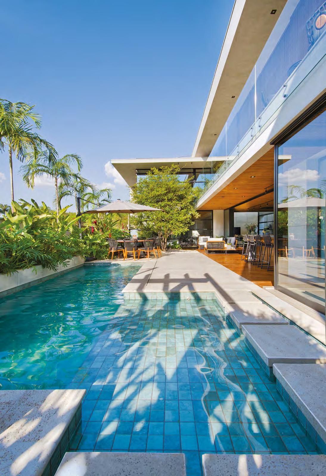 LUANA ULLIAM Nesta casa com paisagismo tropical, a unificação dos ambientes internos garante uma rotina prática, com fluidez em todos os momentos
