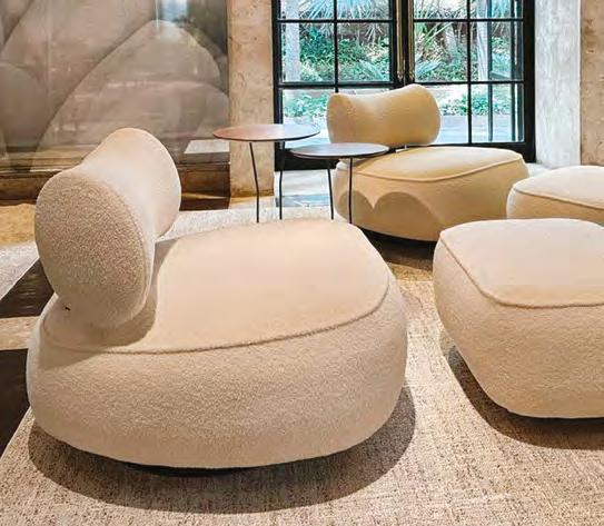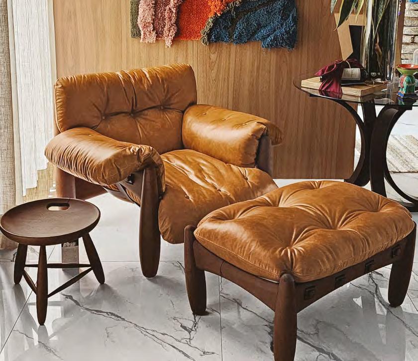01 | Linha Caraíva da Tidelli, design de Luciano Mandelli, disponível na Perfil Casa. Ideal para áreas internas e externas devido ao material resistente; 02 | Poltrona Capri da Mobília 22, com design elegante de Natasha Schlobach, marcada por um estilo inconfundível; 03 | Sofá Oslo da Jackie, por Giorgio Bonaguro, com inspiração no mobiliário italiano. Acompanhado pelas poltronas Oco de Maurício Coelho e pelo banco Cerrado, que traz uma rusticidade elegante; 04 | Cadeira Volare da Flexform, encontrada na Perfil Office, com design de Baldanzi & Novelli, sinônimo de inovação e conforto; 05 | A poltrona e puff Eccho , criação do designer Di Alberto, é uma peça giratória com opção de puff. Lançada no evento Luxury Collection, este móvel de design minimalista está disponível na P.O. Móveis e Decorações; 06 | Da La Cazza Móveis, a mesa Andorra, que mescla madeira e metal e a cadeira Turim que combina madeira e tecido, destacando-se pelo conforto e um design único