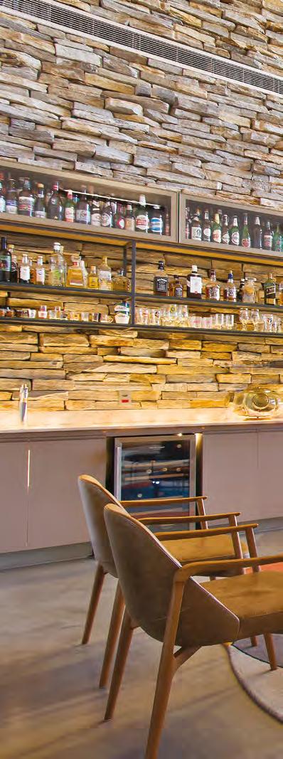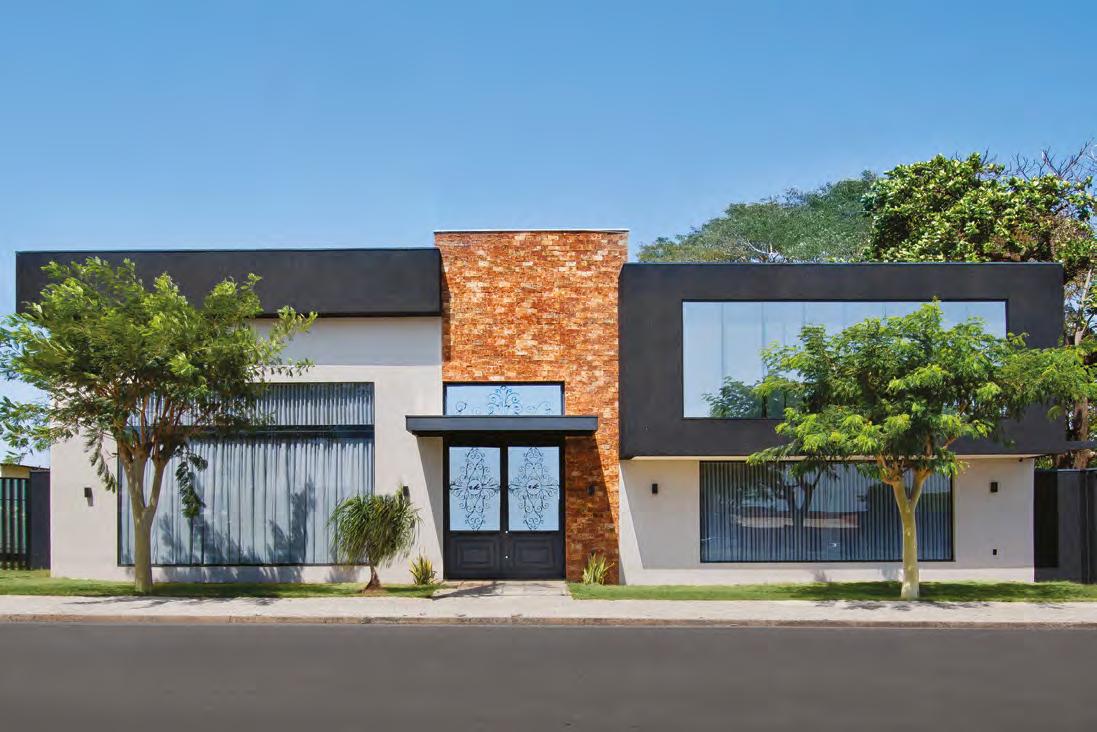 KARINA WINTER A arquitetura de linhas retas ressalta o modernismo da construção, que pincela um toque rústico a partir de elementos como pedra e tijolinhos