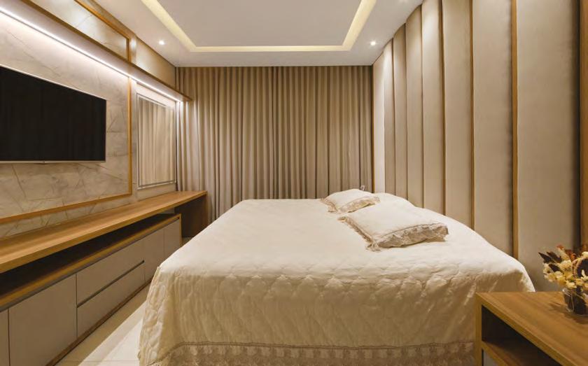 ALINE CAMARGO Com o intuito de proporcionar ambientes aconchegantes para o casal descansar, este projeto revela tons neutros e texturas suaves para inspirar o bem-estar