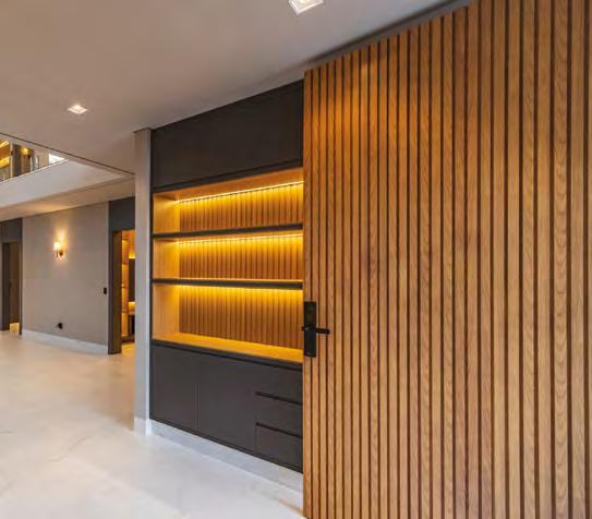 01 | A linha Fitto da Celmar Móveis apresenta um inovador sistema de perfis de alumínio no estilo cremalheira para closets abertos, disponível tanto na versão sobreposta quanto embutida, adicionando versatilidade ao design do ambiente; 02 | As cozinhas da Kitchens trazem a fusão da simplicidade com a mais avançada tecnologia, destacando-se as bancadas e cubas em Corian Concrete, desenhados e processados pela própria empresa, representando o ápice da personalização; 03 | A Decora Móveis é especialista em marcenaria personalizada, criando móveis sob medida que aliam funcionalidade, estilo pessoal e otimização de espaço. Na foto, estante desenhada pela arquiteta Claudia Togni e executada pela empresa; 04 | A Marcato, desde 1950, estabelece o padrão de excelência em móveis artesanais. Cada criação é uma obraprima meticulosamente detalhada, refletindo a tradição e o design que consagram a marca como um marco da alta marcenaria