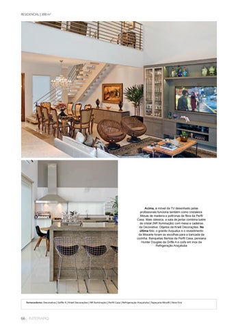 Acima, o móvel da TV desenhado pelas profissionais funciona também como cristaleira. Mesas de madeira e poltronas de fibra da Perfil Casa. Mais clássica, a sala de jantar combina lustre de cristal (NR Iluminação) com mesa e cadeiras da Decorativa. Objetos da Krieê Decorações. Na última foto, o granito Acqualux e o revestimento da Mosarte foram as escolhas para a bancada da cozinha. Banquetas Bertoia da Perfil Casa, persiana Hunter Douglas da Griffe A e coifa em inox da Refrigeração Araçatuba