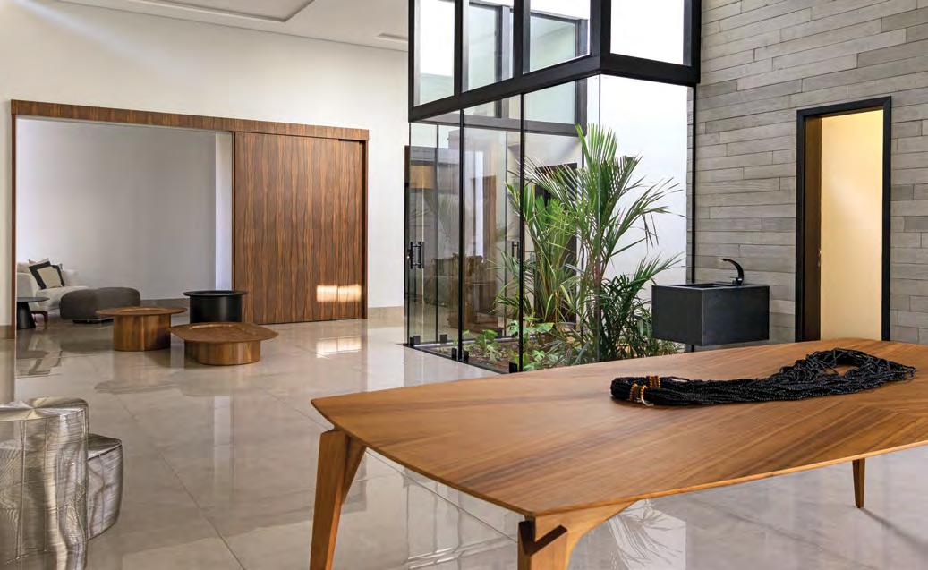 ESCOLHAS CRIATIVAS A casa térrea assinada por Tatiane Paulino e Eric Delcole tem diferenciais importantes, como a integração dos ambientes sociais e a composição ímpar dos acabamentos