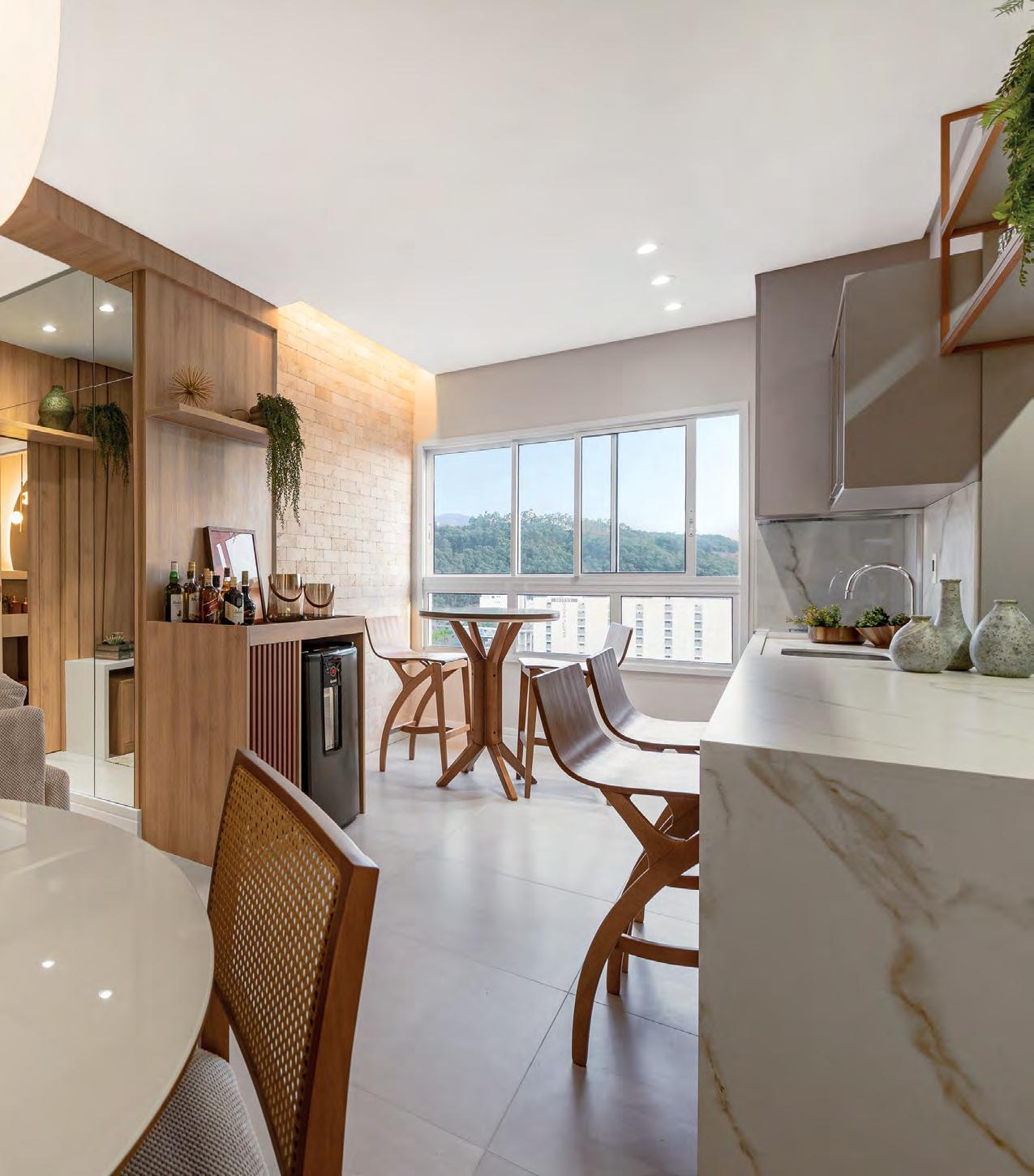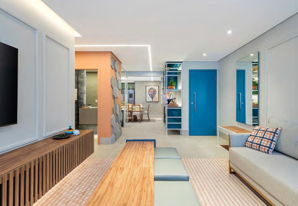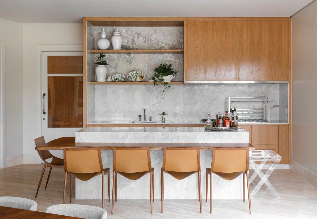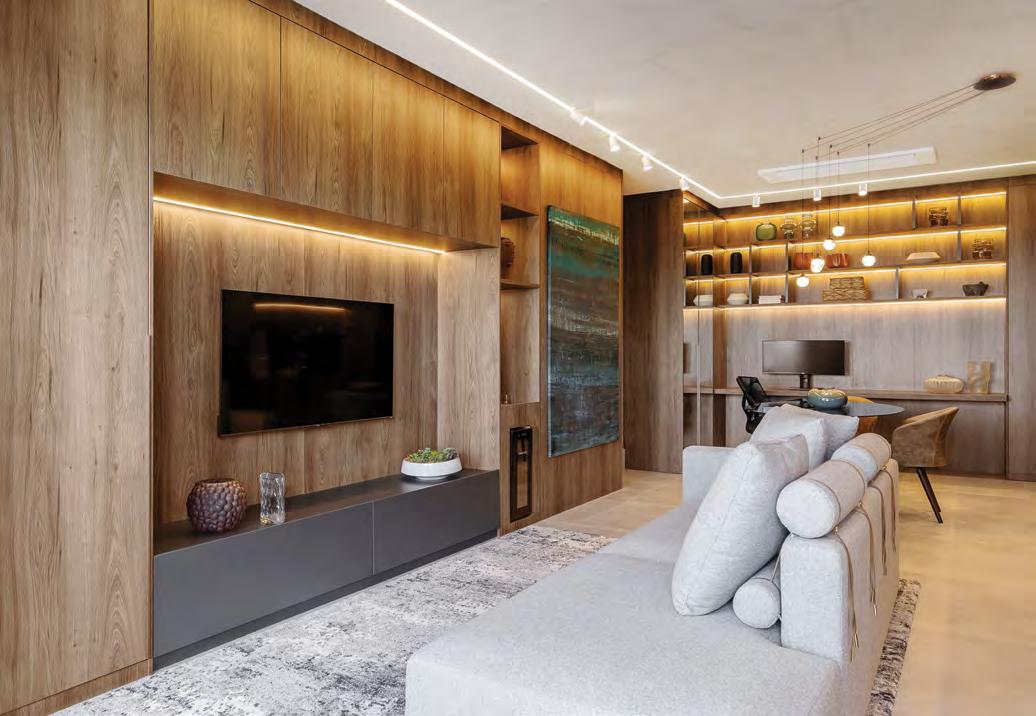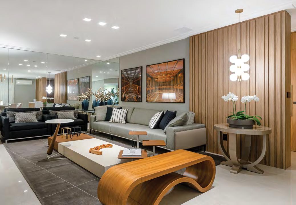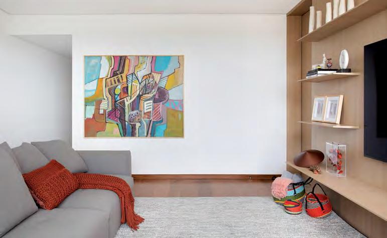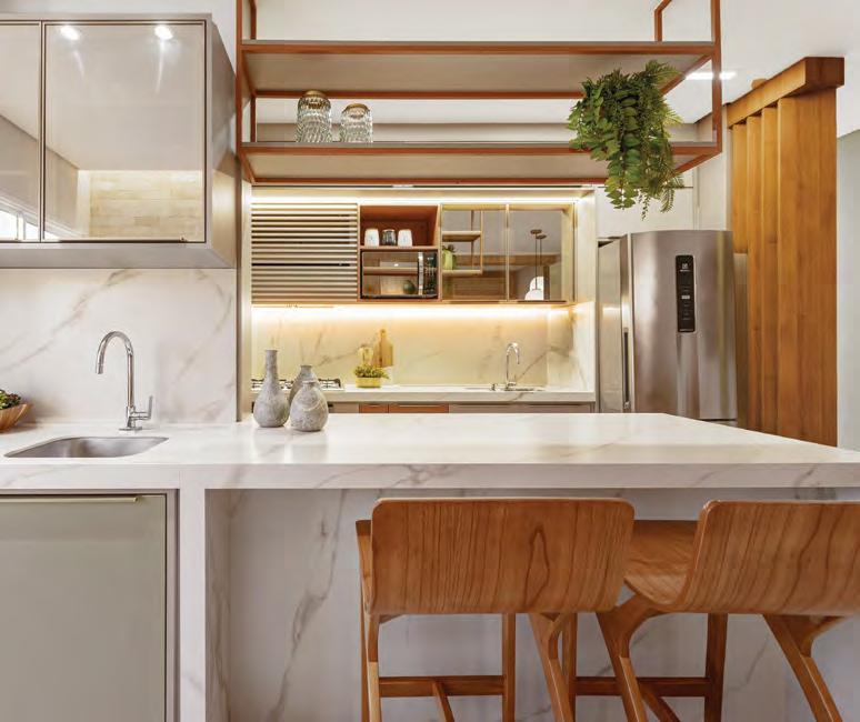 ATMOSFERA CLEAN Com a base neutra evidenciada pela paleta de tons suaves e terrosos, Lucia Monteiro desenvolveu este apartamento com área social integrada