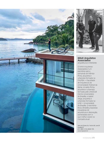 arquitetura e interiores O MAAI Arquitetos Associados é um escritório sob o comando de Mônica Pinto, arquiteta e urbanista formada na FAUFBA – Faculdade de Arquitetura da Universidade Federal da Bahia; Arnaldo Pinho, arquiteto e urbanista formado pelo UNICEUB Centro Universitário de Brasília; e Isabel Veiga, arquiteta e urbanista formada na UNB – Universidade de Brasília. O escritório leva a Brasília propostas inovadoras de arquitetura e decoração, conectadas com o que melhor existe no mercado atual. Setor de Clubes Sul, Trecho 03, Lote 03 Brasília/DF (61) 3365.1413 e 3328.1735 www.maai.com.br