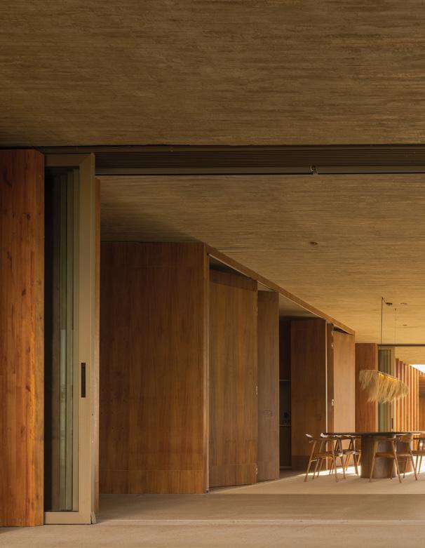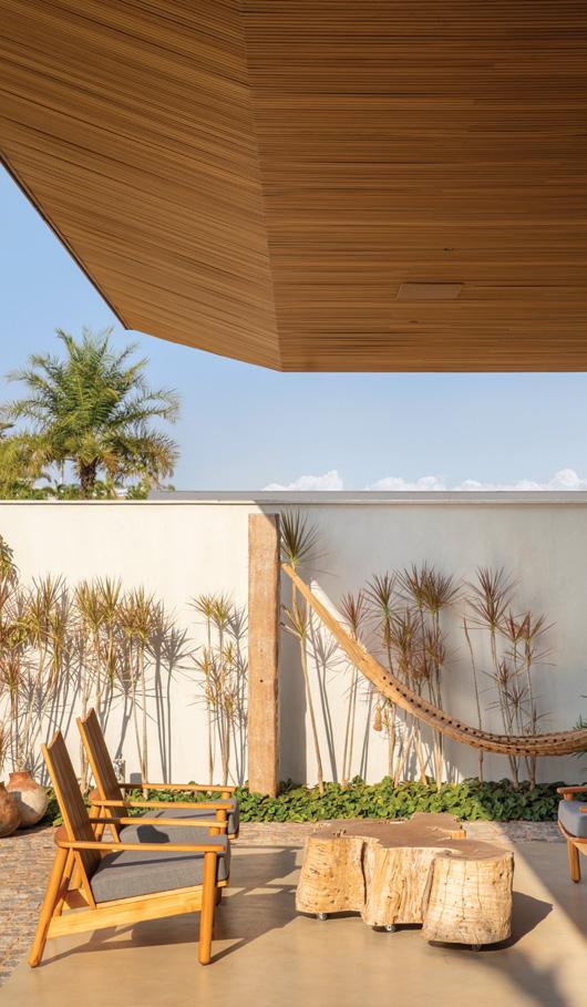 “Este projeto arquitetônico foi desenvolvido com o intuito de proporcionar ao cliente um lugar de aconchego e descanso. Inspirada na sensação de estar em férias que os hotéis oferecem, a residência reflete um ambiente relaxante e acolhedor, onde cada detalhe foi cuidadosamente planejado para integrar a natureza aos caminhos da casa. A estrutura conta com uma suíte principal, que oferece privacidade e conforto, além de uma suíte adicional para receber os filhos que moram fora.”