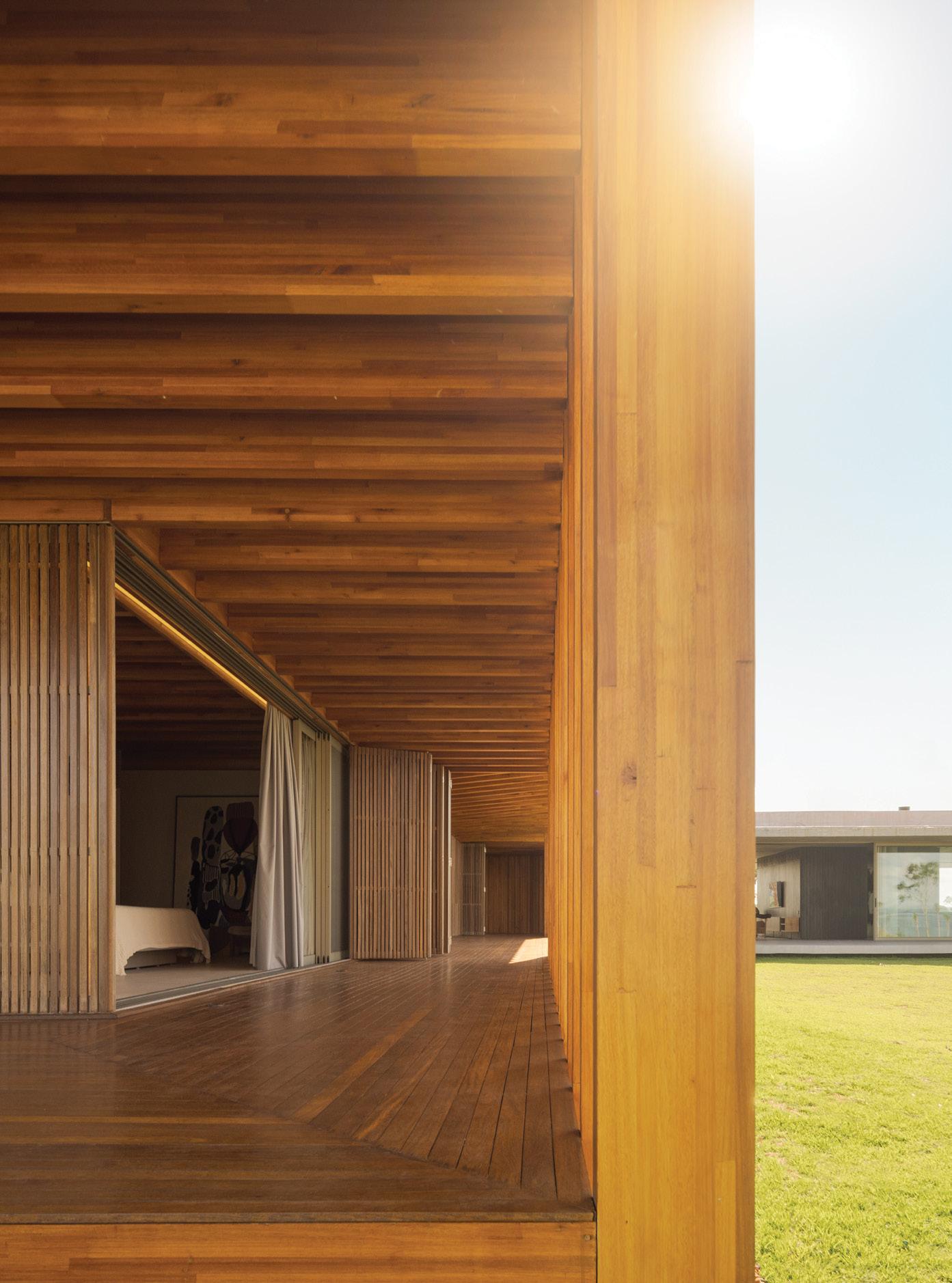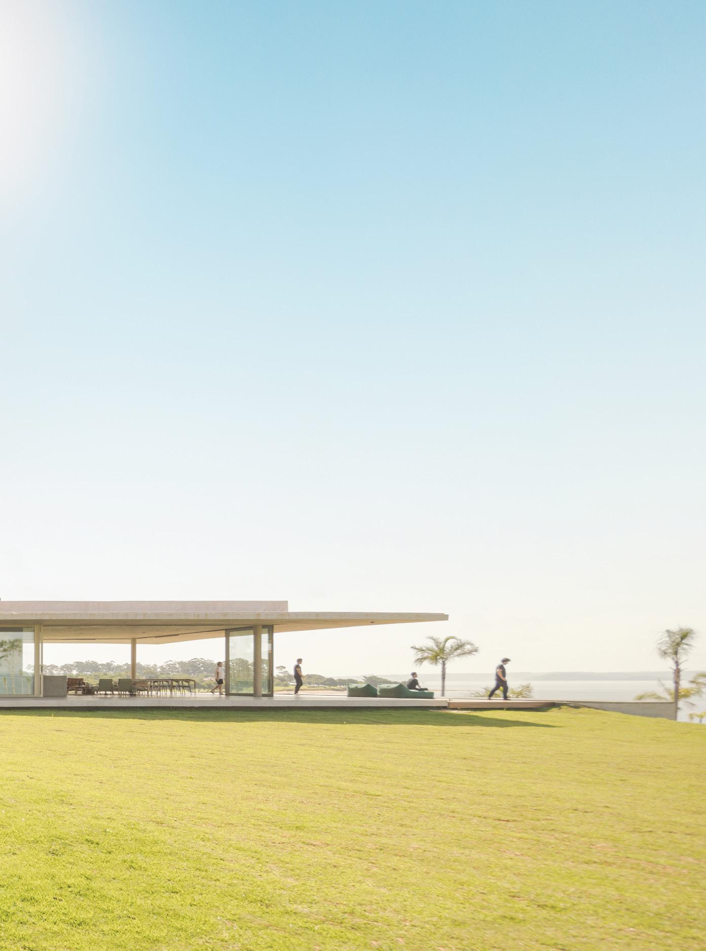 Linhas retas e aberturas de vidro conectam os interiores ao entorno contemplativo