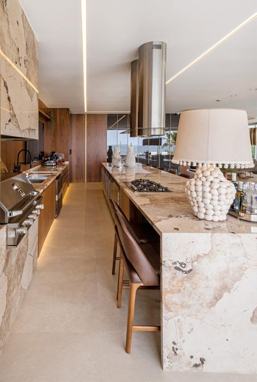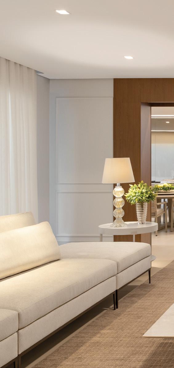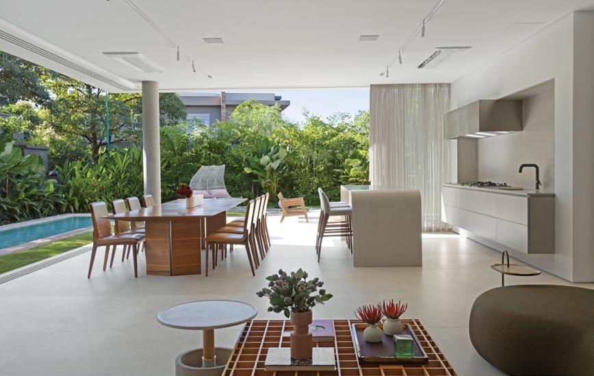 Os espaços sociais conectam-se com áreas externas, garantindo vistas privilegiadas.