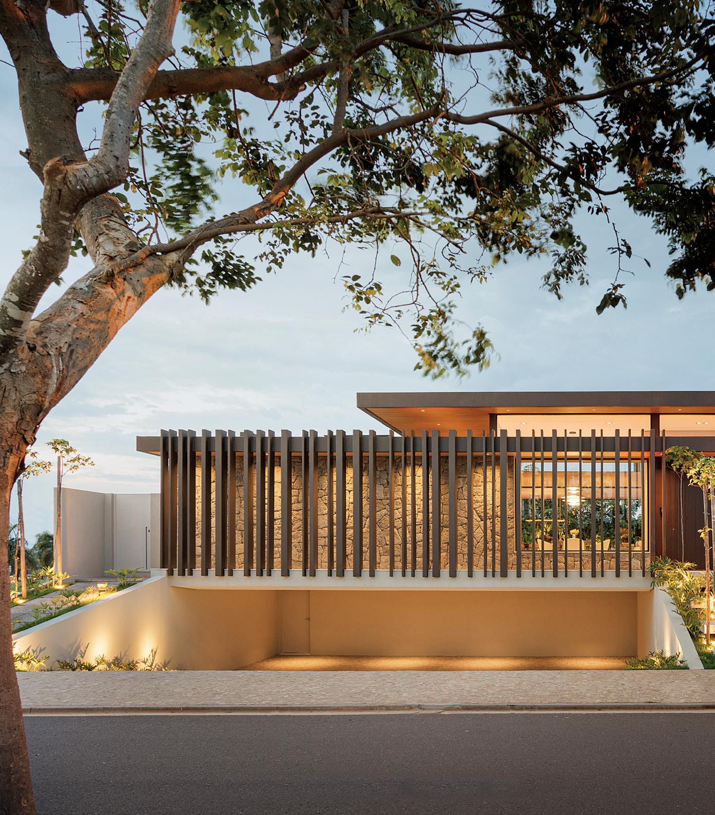 Linhas alongadas e arquitetura contemporânea definem esta residência acolhedora