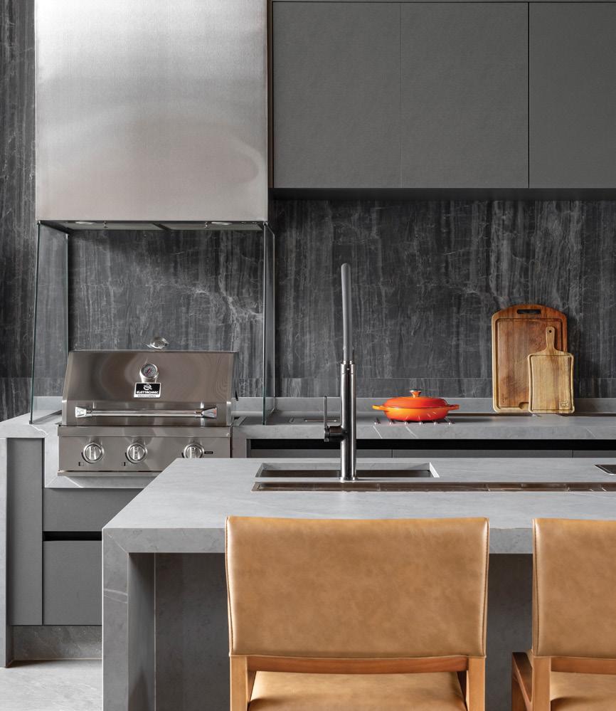Um mármore preto enriquecido por veios brancos e um brilho sutil, não só eleva a estética de qualquer espaço, mas também encapsula a essência de um estilo contemporâneo que captura e cativa todos que o veem. Personalidade e um toque de modernidade resumem bem este lançamento.