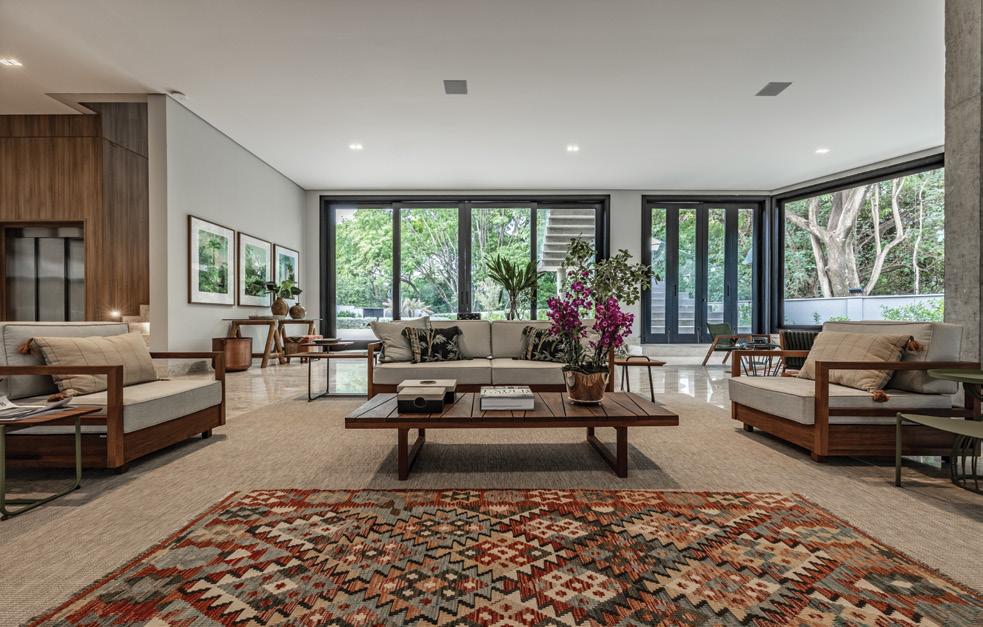 Espaços amplos e acabamentos nobres celebram a vida nesta residência