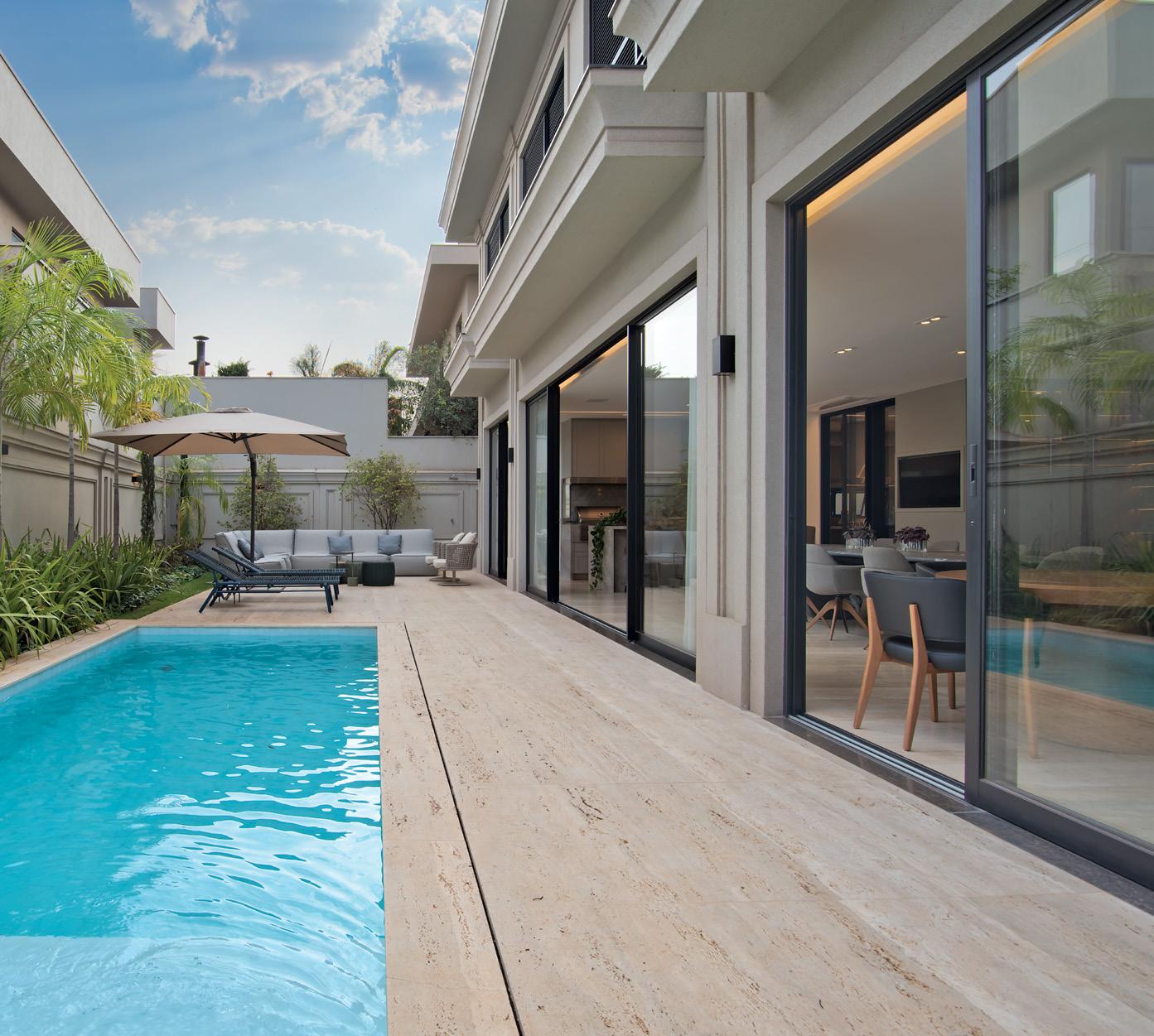 “Este projeto foi um grande desafio, pois envolveu a reforma completa de uma casa antiga para adequá-la às necessidades da família. Nosso objetivo foi redistribuir os ambientes internos, garantindo maior funcionalidade e conectividade entre os espaços. Além disso, criamos uma nova construção para ampliar ainda mais as possibilidades da casa, priorizando a integração e o conforto. Na área externa, revitalizamos cada detalhe, transformando a piscina em um espaço impactante e central para o convívio social e familiar. O resultado é uma casa que une modernidade e acolhimento, perfeitamente adaptada ao estilo de vida dos moradores.”