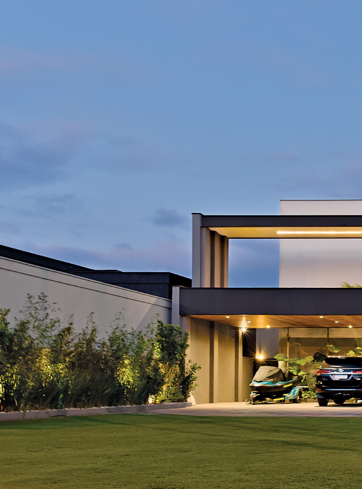 Com uma arquitetura contemporânea e linhas alongadas, a residência oferece ambientes ideais para uma vida plena