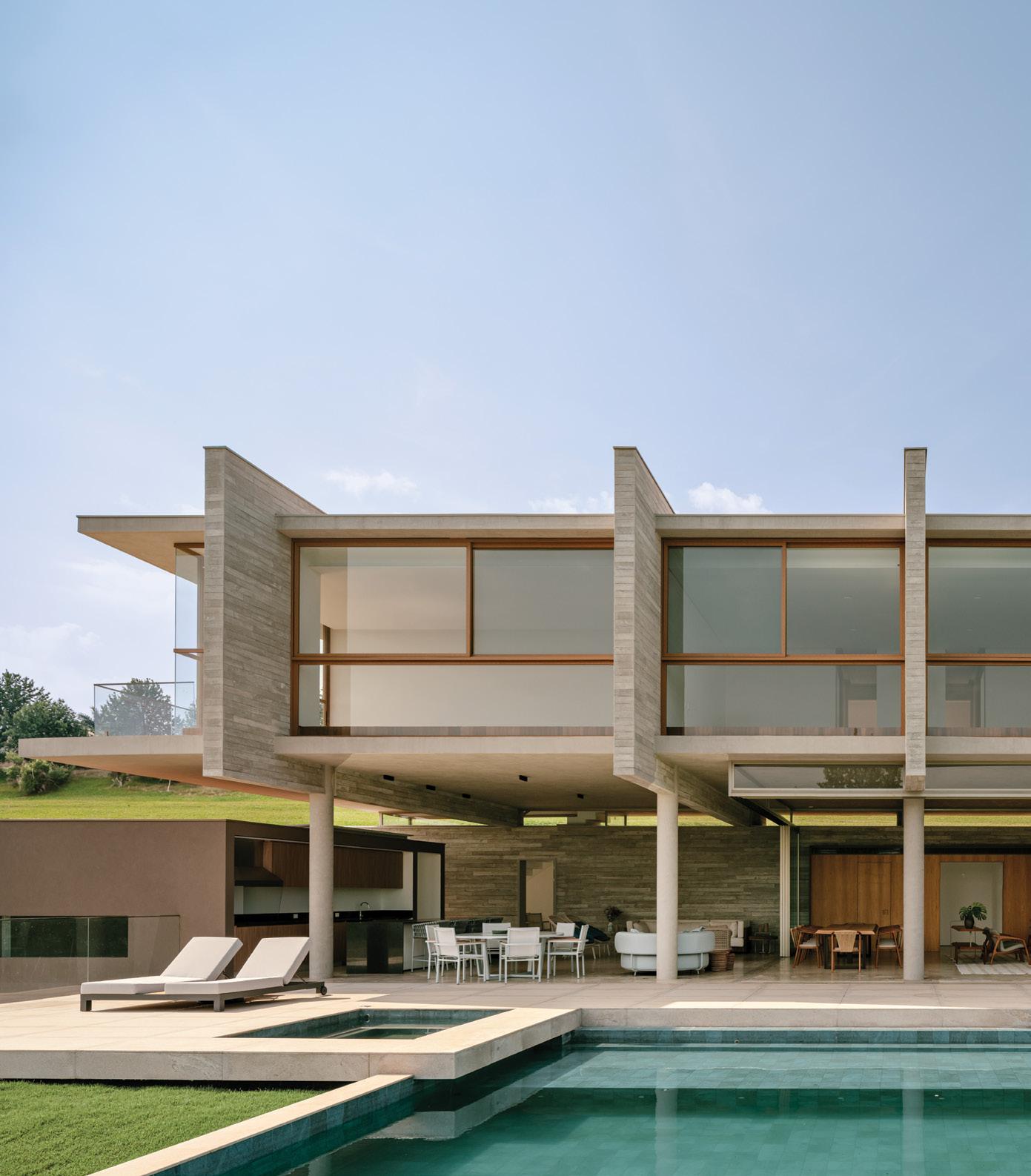 Uma casa integrada ao terreno, com estrutura marcante e vistas deslumbrantes