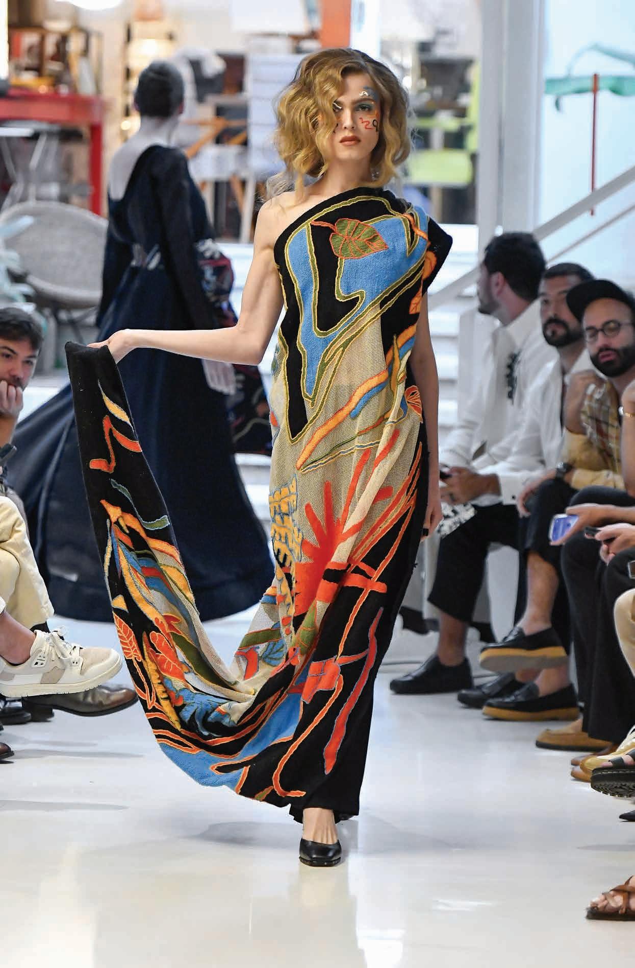Nesta foto, a coleção da Handred destacou-se pelas formas inspiradas no mobiliário modernista brasileiro. A referência ao designer Sérgio Rodrigues aparece nos recortes curvos, nas texturas artesanais e na paleta de tons terrosos. Na página ao lado, Alexandre Herchcovitch, de volta às passarelas após sete anos, emocionou com uma coleção que revisita suas assinaturas mais marcantes: caveiras, alfaiataria desconstruída, jeanswear e sobreposições