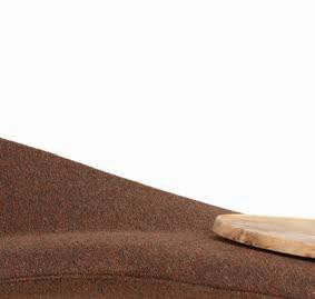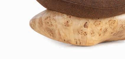 Acima, Eduardo Trevisan apresentou na exposição a poltrona Bulbo. A peça explorou a robustez natural da madeira maciça Tauari em contraste com a suavidade do design e do revestimento em tecido de matéria-prima orgânica. Ao lado, a Tecline e o designer Ronald Sasson apresentaram uma coleção exclusiva de poltronas inspiradas em paisagens naturais icônicas ao redor do mundo. Na foto, as poltronas Mauna, com edição limitada a apenas 10 unidades.Abaixo, a linha Juruá, da Bell’Arte, criada por Larissa Diegolli, buscou capturar a fluidez e a organicidade do rio Juruá, o mais sinuoso do planeta. Inspirada na paisagem ribeirinha, a coleção contou com um sofá e uma poltrona, cujas formas remetiam às curvas do rio. Complementando a linha, um deck de madeira maciça compôs mesas laterais e aparadores, fazendo referência às palafitas e casas flutuantes da região.