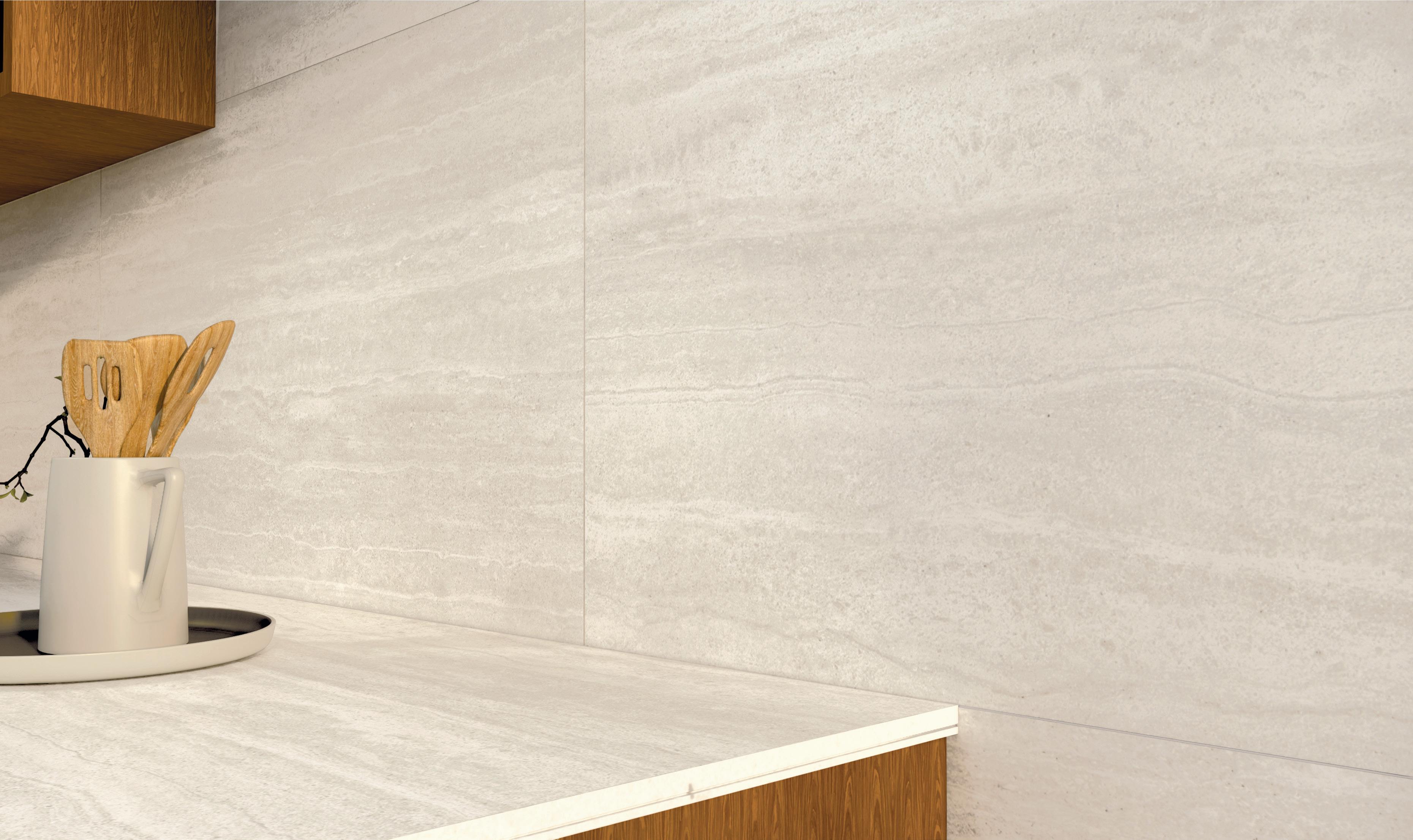 A nova lastra Renascence (Ref. 120004) reinterpreta o mármore travertino em uma leitura que conecta arte, arquitetura e natureza. A riqueza de detalhes revela transições sutis de tons, sombras e veios longitudinais, criando profundidade e ritmo delicado na paginação. No formato 119,5 x 250 cm, com superfície natural vein e 4 faces.
