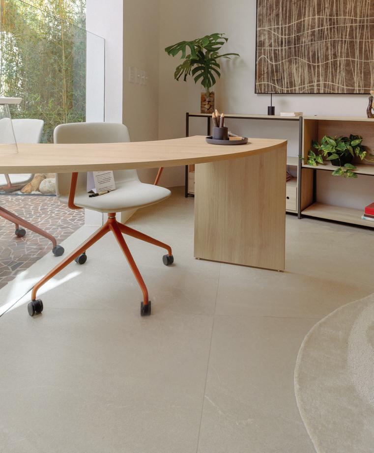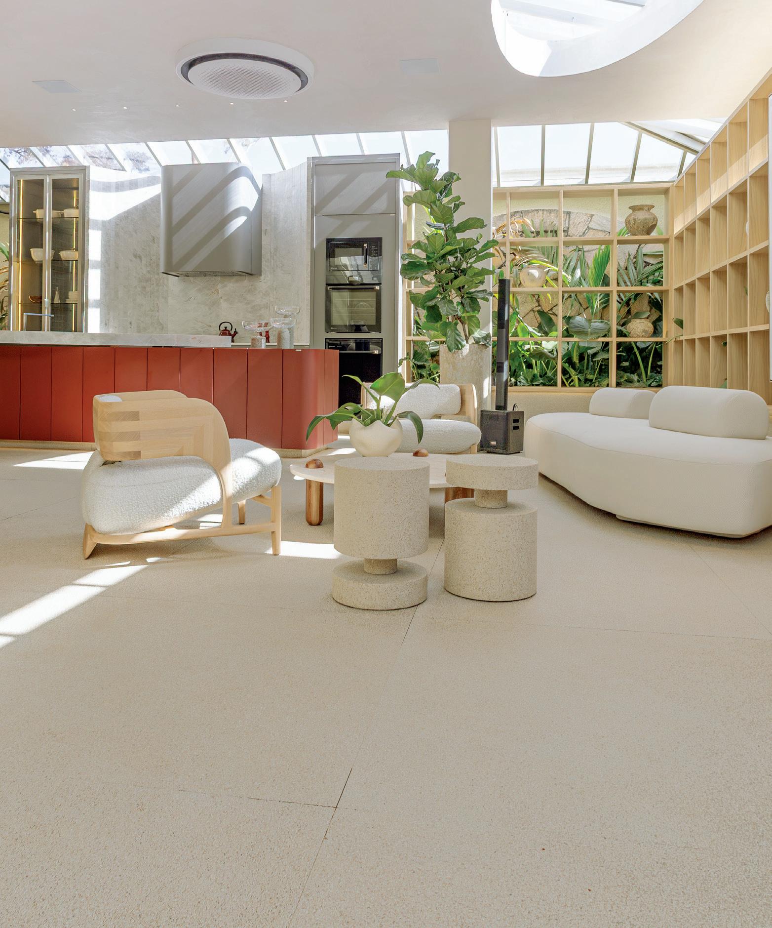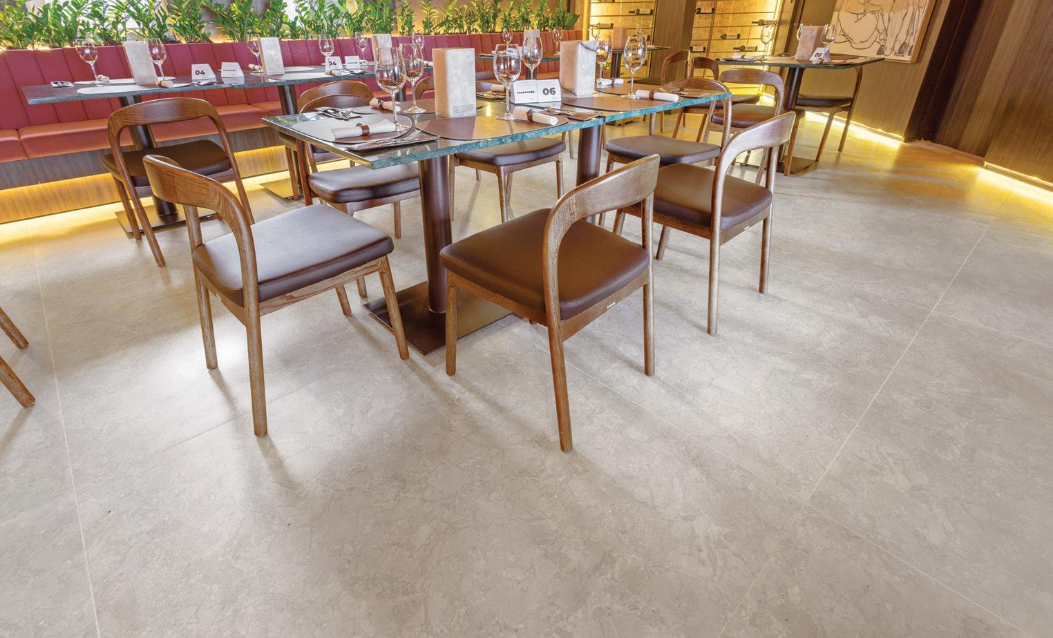 05 e 06 | Para o piso do espaço “Reconecta”, os profissionais Joel Pereira, Marina Moro e Viviane Cantarino utilizaram o porcelanato Val Gardenia Grigio (Ref. 108060). Com formato de 108x108 cm, sua superfície Natural SAP oferece resistência superior, tornando o ambiente funcional para espaços de alto tráfego. 07 | No “Restaurante Brisa” assinado por Carina Rezende e Maísa Andrade, o porcelanato Zen Orvalho (Ref. 123065) foi a escolha para o piso. Inspirado no movimento das pedras nos jardins zen japoneses, traz a essência da natureza para os interiores. 08 | Paola Cimarelli Landgraf escolheu o porcelanato Pietra Di Merapi Sabbia (Ref. 123057) para o piso do “Living Design”. Com a robustez das pedras vulcânicas, o produto traz um toque escultural e imponente aos espaços. 09 | Wallace Oliveira, ao criar a “Varanda Aconchego”, apostou no porcelanato Shizen (Ref. 108071), ideal para áreas externas.