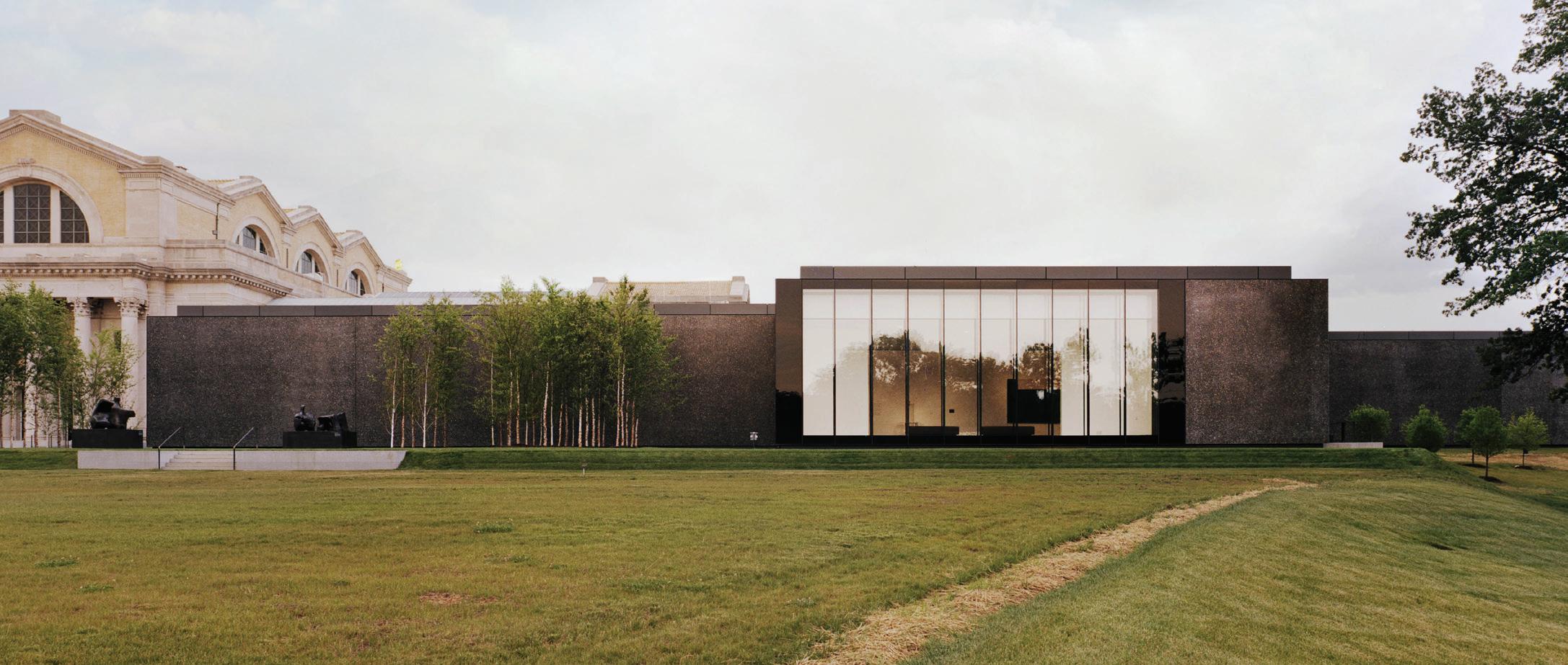 01 | Sir David Chipperfield; 02 | Sede da Amorepacific, 2017, Seul, Coreia do Sul, com fachada de vidro e aletas verticais de alumínio criando efeito de luz e sombra; 03 | Hoxton Press, 2018, Londres, Reino Unido, em colaboração com o escritório Karakusevic Carson Architects, projeto de redesenho da comunidade de Colville Estate; 04 | Museu de Arte de Saint Louis, 2013, Missouri, Estados Unidos, em colaboração com HOK, manteve a construção original de Cass Gilbert (1904), a fachada é em concreto escuro com materiais locais, com integração ao bosque;