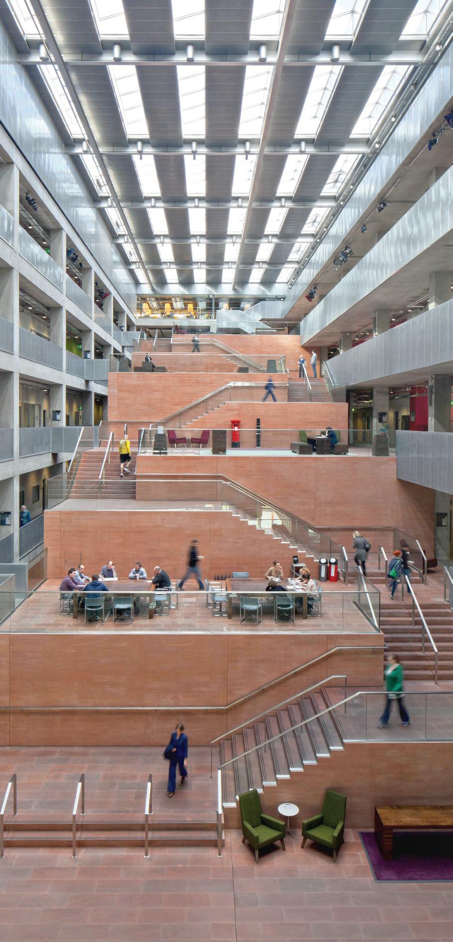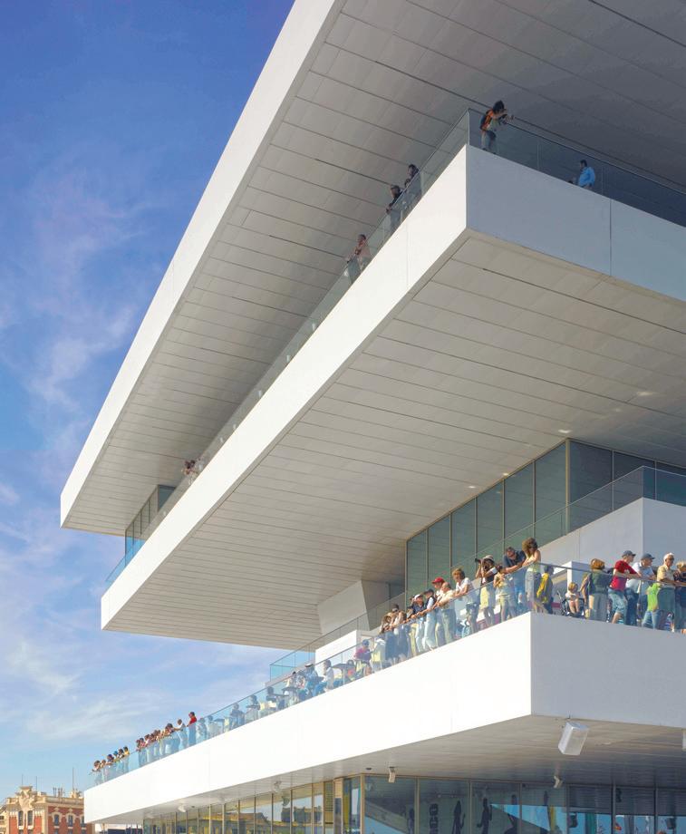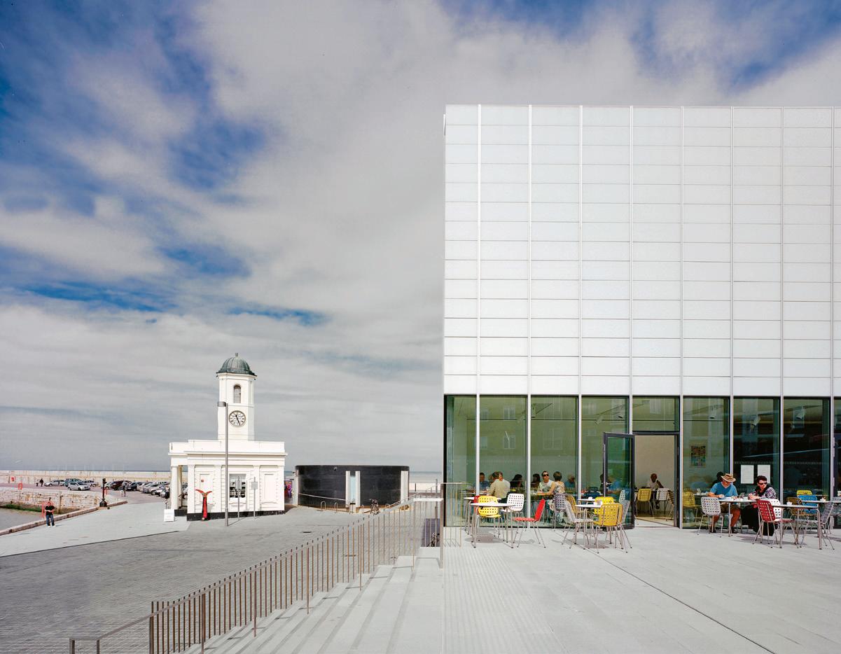 05 e 06 | “Edifício da America’s Cup ‘Veles e Vents’, 2006, Valência, Espanha, em colaboração com Fermín Vázquez (b720 Arquitectos), são quatro pavimentos sobrepostos com vista ampla para o canal; 07 | The Hepworth Wakefield, 2011, West Yorkshire, Reino Unido, junto ao rio Calder, possui 10 volumes trapezoidais interligados, cada um com dimensões e ângulos próprios; 08 | Sede da BBC Scotland, 2007, Glasgow, Reino Unido, o átrio central conecta os espaços, com escada em espiral e passarelas em níveis; 09 | Turner Contemporary, 2011, Margate, Reino Unido, inspirado no artista J.M.W. Turner, apresenta seis volumes idênticos com vista para o mar, cobertura inclinada e fachada de vidro ácido, resistente à maresia; 10 | Morland Mixité Capitale, 2022, Paris, França, restauração feita em parceria com o Calq Architecture, apresenta um jardim urbano com cobertura e volumes elevados sobre as arcadas.