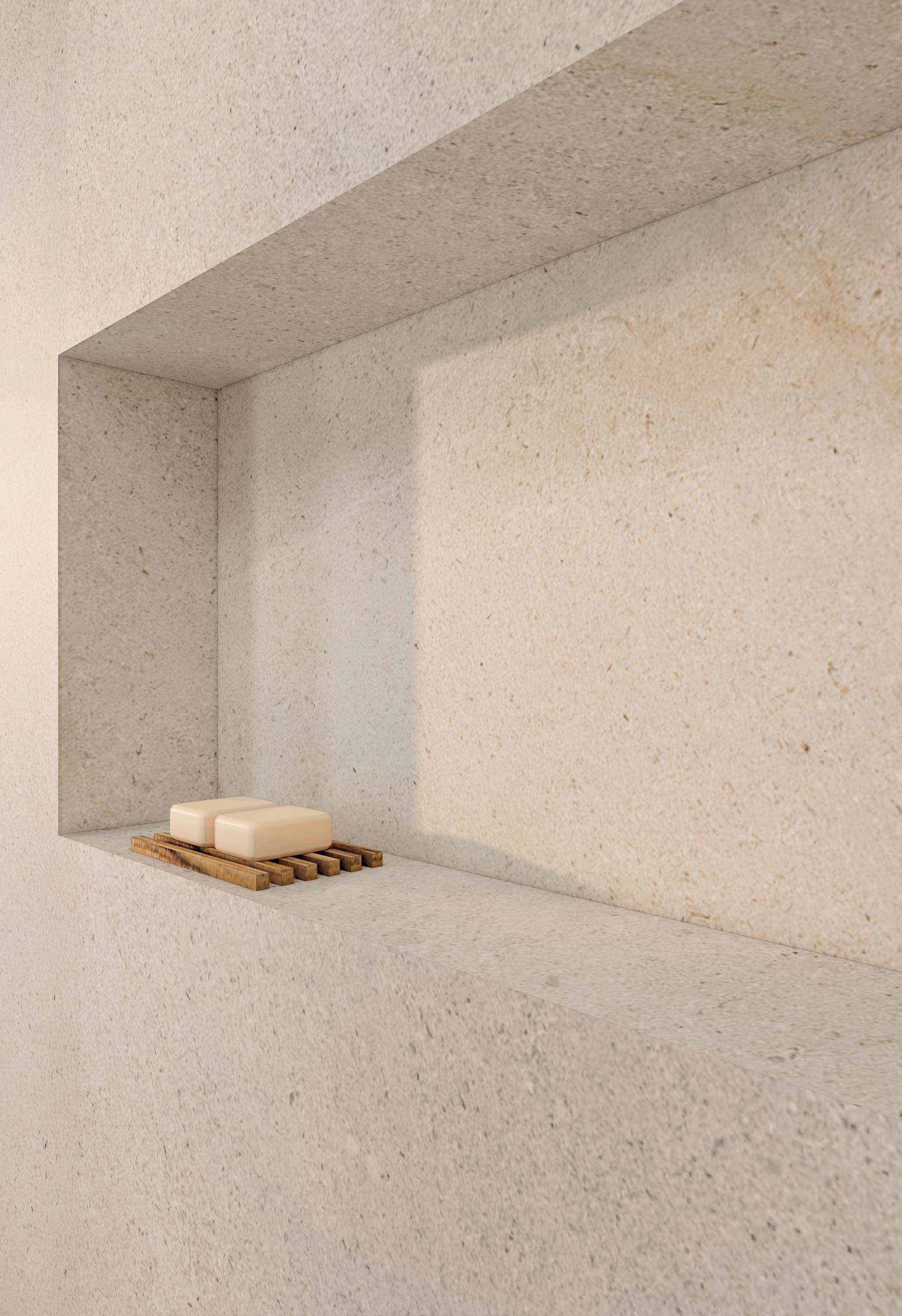 O travertino clássico ganha nova interpretação no Pantheon, que combina tradição e contemporaneidade em superfícies de desenho atemporal. Versátil e sofisticado, atende projetos que transitam entre o minimalismo e o neoclássico. Disponível no formato 123 x 123 cm, com acabamento natural grit (Ref. 123069) e natural SAP (Ref. 123070), ambos com 6 faces; e também em 61,4 x 123 cm, acabamento natural grit (Ref. 640001) com 12 faces.