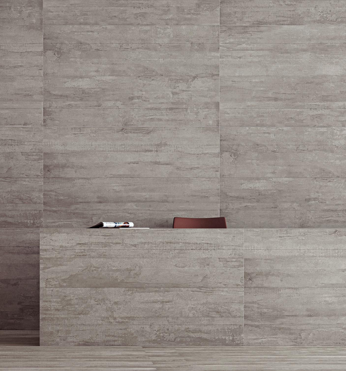 A beleza da oxidação e a ação do tempo ganham forma em Chronos, porcelanato de superfícies com nuances metálicas e quentes. Ideal para projetos de estética industrial e urbana, une força visual e sofisticação. Disponível nas cores Metallo (Ref. 123072) e Petra (Ref. 123073), no formato 123 x 123 cm, com acabamento natural brushed e 6 faces. Indicado para ambientes internos e externos de alto tráfego, garagens, escadas e áreas descobertas, exceto em torno de piscinas.