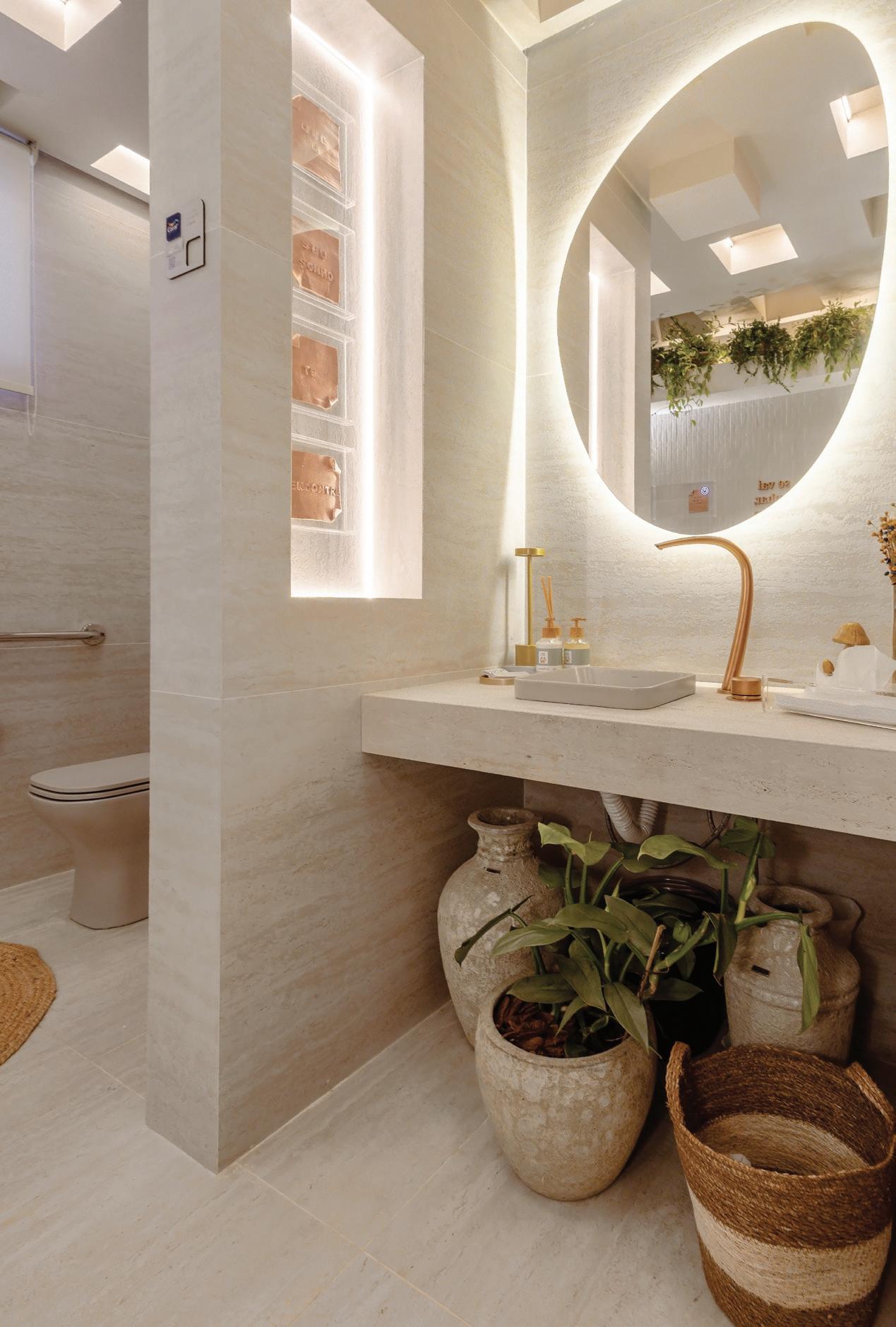 Sempre inovadora, a Villagres esteve presente também na Mostra ArqDesign 2025, em São José do Rio Preto (SP). Confira: 10 e 12 | No ambiente “Praça Das Letras”, Carla Bonfim escolheu o Mântova Bianco Decor (Ref. 800067) com formato de 80,5x140 cm para o piso da entrada do “Lavabo Poesia”. Nele foi feita uma composição de 3 pisos: o porcelanato Blu Siena (Ref. 800044) com tons azulados, o Pietra Di Milos Argento (Ref. 123055) e o Markina (Ref. 800045) inspirado na opulência do mármore Nero Marquína. 11 e 13 | A cabana “Moriá”, da Ojeda Engenharia e Arquitetura, apresenta o porcelanato Renascence (Ref. 108057), que remete ao mármore Travertino, no formato 108X108 cm, para o piso do gourmet. Já para o banheiro a escolha do piso foi o House O White (Ref. 123037) e na parede o Mântova Bianco Decor (Ref. 800067).