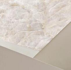 O quartzito Taj Mahal inspira o Taj Crystal, porcelanato de fundo cristalino e veios suaves que evocam leveza e luminosidade natural. Sua versão em lastra amplia a escala arquitetônica e imprime sofisticação serena aos projetos. Disponível no formato 119,5x250cm, acabamento natural (Ref. 120005) e polido (Ref. 120006), ambos com 4 faces.