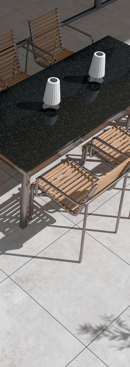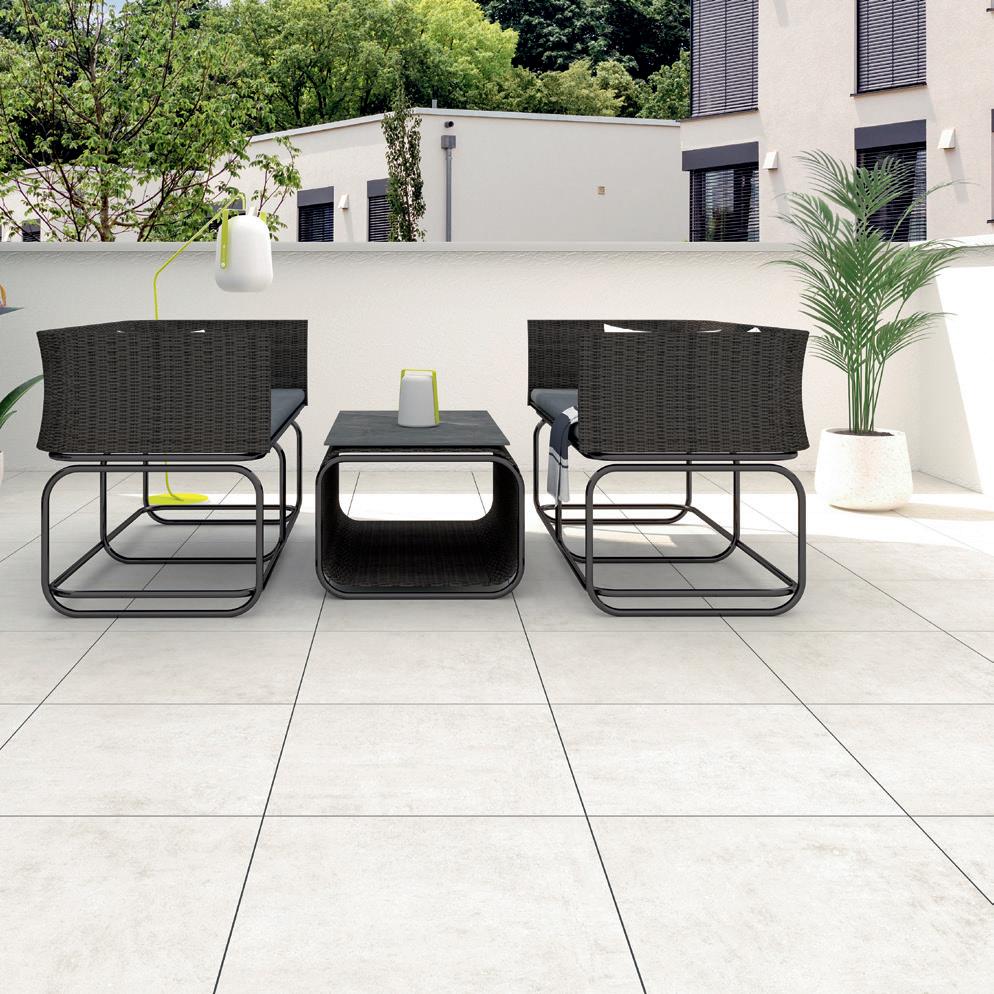 Die Erweiterung der trendstarken Indoor Serie durch Terrassenelemente in den Formaten 80 × 80 cm sowie 60 × 60 cm, ermöglicht die Realisierung extrem langlebiger, robuster und hochwertiger Gestaltungskonzepte in sämtlichen Außenbereichen – natürlich keramisch.