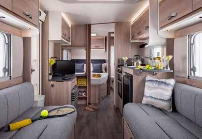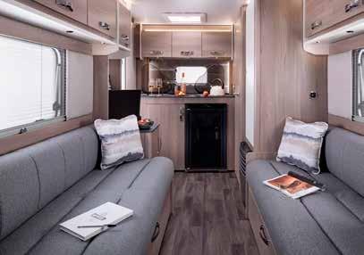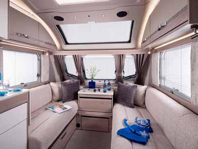 Mondial SE kombinerer kompakt ydre med høj komfort, helårsisoleret indretning og gennemtænkte løsninger i alle detaljer. Fælles er den klassiske kommode mellem langsæderne med udtræksplade, som fungerer perfekt som serveringsbord for to personer.
