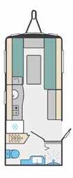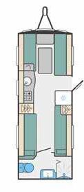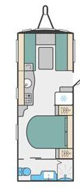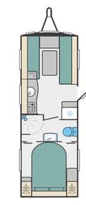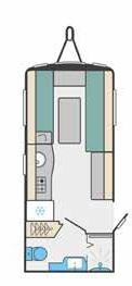 Hver eneste kvadratmeter er udnyttet optimalt og skaber en rummelig og indbydende atmosfære. Indretningen er med fokus på hygge og komfort for alle – uanset om I er et par, der bruger vognen som rejsevogn, eller en familie, der drager på ferie sammen.