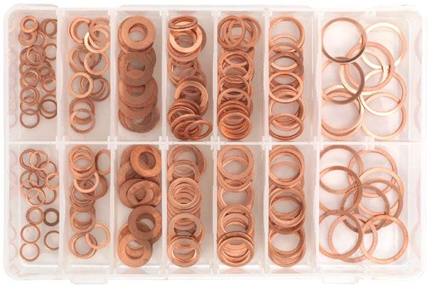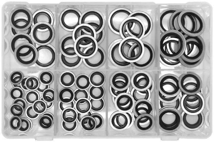 • Zawartość (Przybliżona ilość): Identyfikator x OD x grubość; 6 x 10 x 1 (x20) 10 x 13,5 x 1 (x20) 10 x 20 x 1 (x20) 12 x 16 x 1,5 (x20) 14 x 18 x 1,5 (x20) 16 x 20 x 1,5 (x15) 21 x 25 x 1 (x10), 8 x 11,5 x 1 (x20) 10 x 14 x 1 (x20) 10 x 20 x 2 (x20) 12 x 18 x 1,5 (x20) 14 x 20 x 1,5 (x20) 17 x 21 x 1,5 (x15) 22 x 27 x 1 mm (x10).