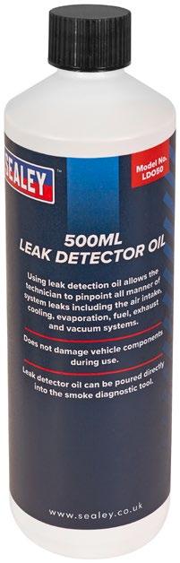 • Używanie oleju do wykrywania nieszczelności pozwala technikowi zlokalizować wszelkiego rodzaju nieszczelności w układach, w tym wlotu powietrza, chłodzenia, parowania, paliwa, układu wydechowego i podciśnienia.