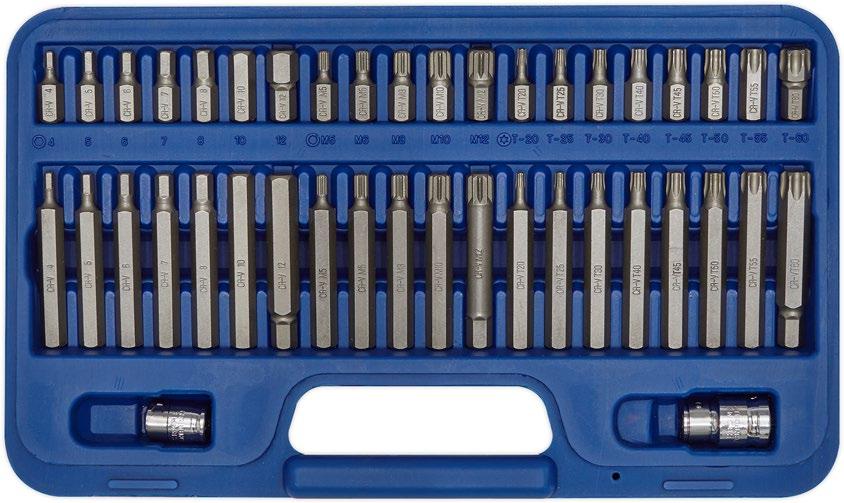 • Zawartość: Przedłużki napędu 3/8"; 75, 150mm, 3/8" 200mm Przesuwny T-Bar, 3/8" Kwadrat; 7, 8, 10, 11, 12, 13, 14, 5/16", 3/8", 3/8" z napędem sześciokątnym; 8, 9, 10, 12, 13, 14, 17mm, trójkąt; 10mm (PSA) Wielowypust bezpieczeństwa; M16, kwadratowa kobieta; 10mm, TRX-Gwiazda*; T45, klucz do korka spustowego oleju z uchwytem T, 3szt Części specjalne do Forda / Land Rovera / BMW / VW / Audi, 1 szt Specjalne gniazdo do samochodów japońskich.