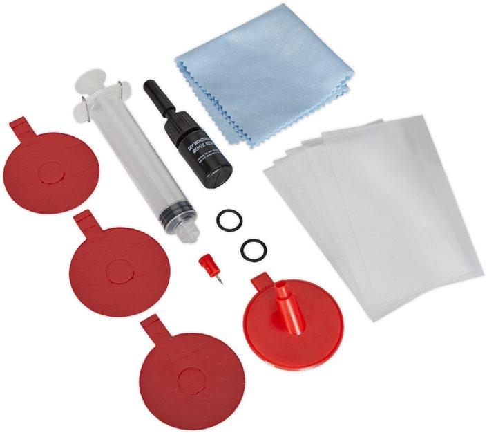 • Twarda formuła żywicy wypełnia wióry i pęknięcia, aby zapobiec rozprzestrzenianiu się uszkodzeń.