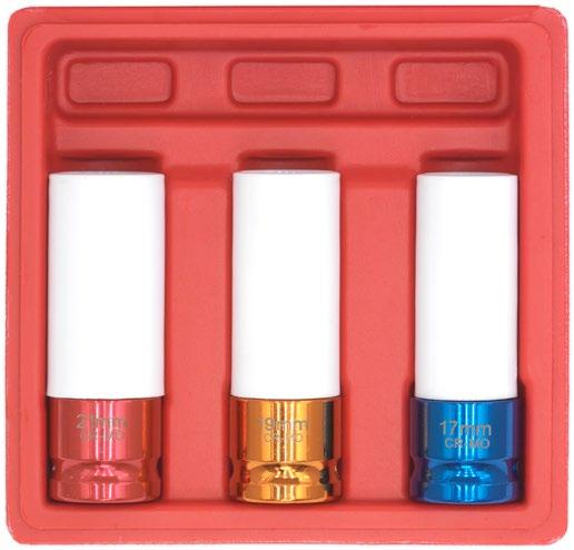 • 6-punktowe klucze nasadowe 3/8", odpowiednie do przewodów wtryskiwaczy paliwa w większości silników wysokoprężnych.