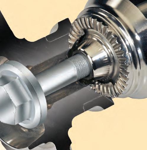 Joonis 1. UF-Face Spline, mudeli ristlõige Face Spline’i tehnoloogia seisneb püsiühenduse moodustamises rattarummu ja fikseeritud veovõlli liigendi vahel liigendil asuva profiili abil. Selle tsentreerimiseks kasutatakse rummus asuvat koonust, mis surutakse väsimuskindla poldi abil rummu sisse.