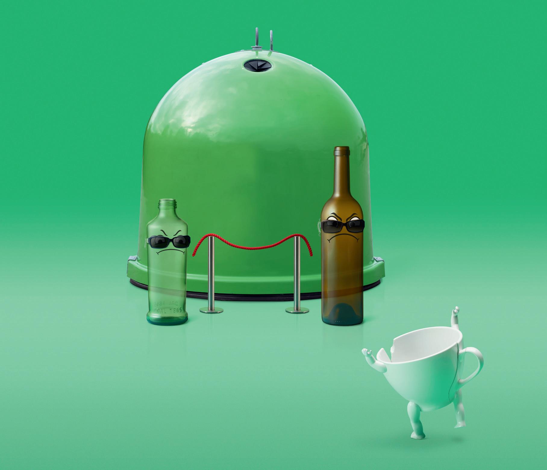 Borden, tassen en ovenschotels horen niet thuis in de glasbol. Stop ze goed verpakt bij het restafval of breng ze naar het recyclagepark.