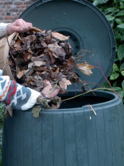 • lucht: een mengsel van groen en bruin materiaal is ideaal om voldoende lucht in de holtes tussen het organisch materiaal te krijgen. Dus: verwerk niet enkel grasmaaisel en de resten van groenten en fruit, maar ook drogere tuinresten.