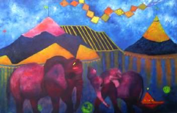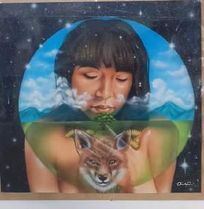 ""Maternaturae". (2023) Aerógrafocancontrol 58x39, Oaxaca,México AndrésPérezHernández"El amor de mamá" (2011) Óleo sobre tela 59 X 30 5 Oaxaca, México.