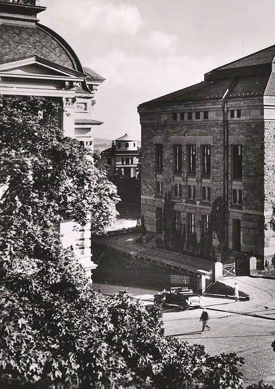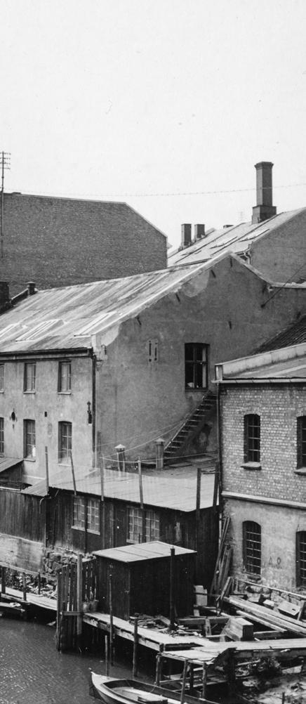 Den store bygningen med tre etasjer på høyre side er Fuglesangs & Sønners vattfabrikk i Christian Krohgs gate 16 der Harald og Ivan ble oppdaget og arrestert under innbruddet i september 1928. Bildet er tatt fra Hausmanns bro mot Vaterlands bro i 1932. FOTO: RUTH RAABE/OSLO MUSEUM