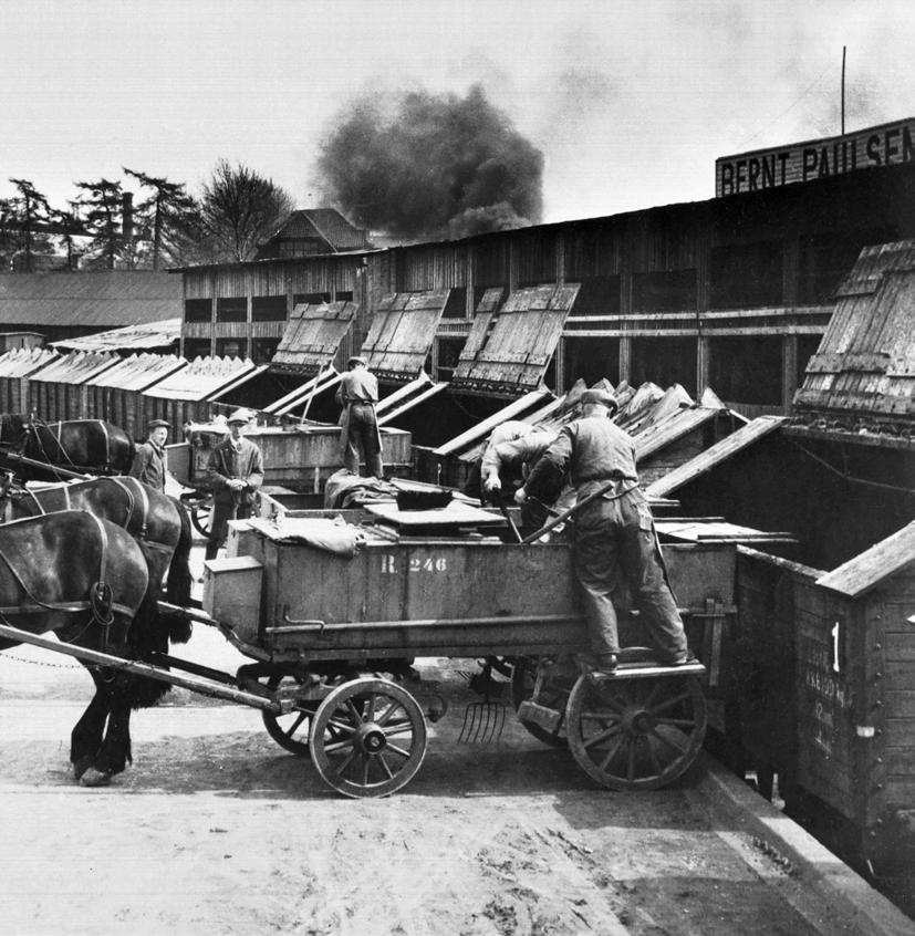 Pudrettvogner fra Oslo Renholdsverk på Sørenga i 1945-50.