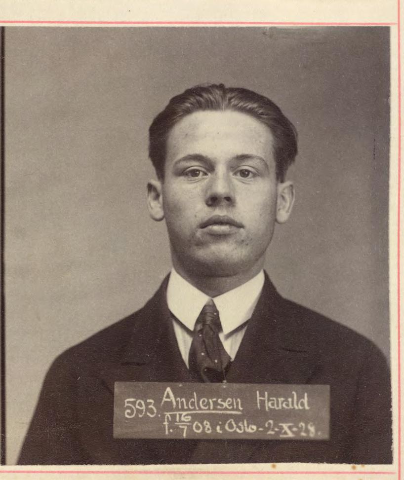Harald som 20åring i oktober 1928 etter innbruddet hos Henriksen & Steen